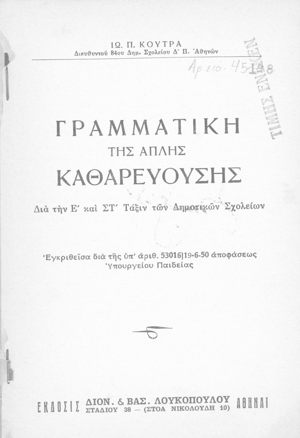 Εκδότης: Διον. Και Βασ. Λουκόπουλος