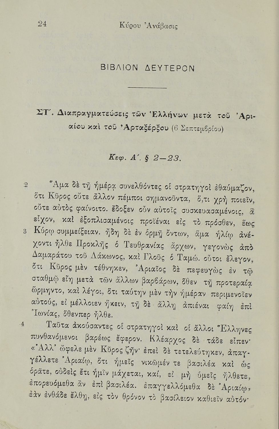 Εκλογαί εκ της Κύρου Αναβάσεως του Ξενοφώντος. Δια την Α΄ και Β΄ Τάξιν των Ημιγυμνασίων και των Εξατάξιων Γυμνασίων
