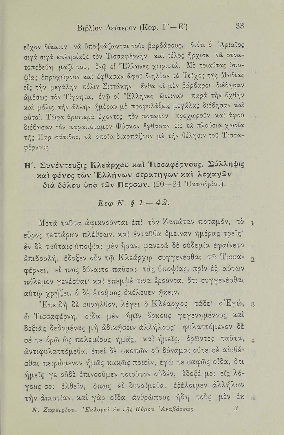 Ξενοφών, Νικόλαος Ι. Ζαφειρίου (σχόλια)