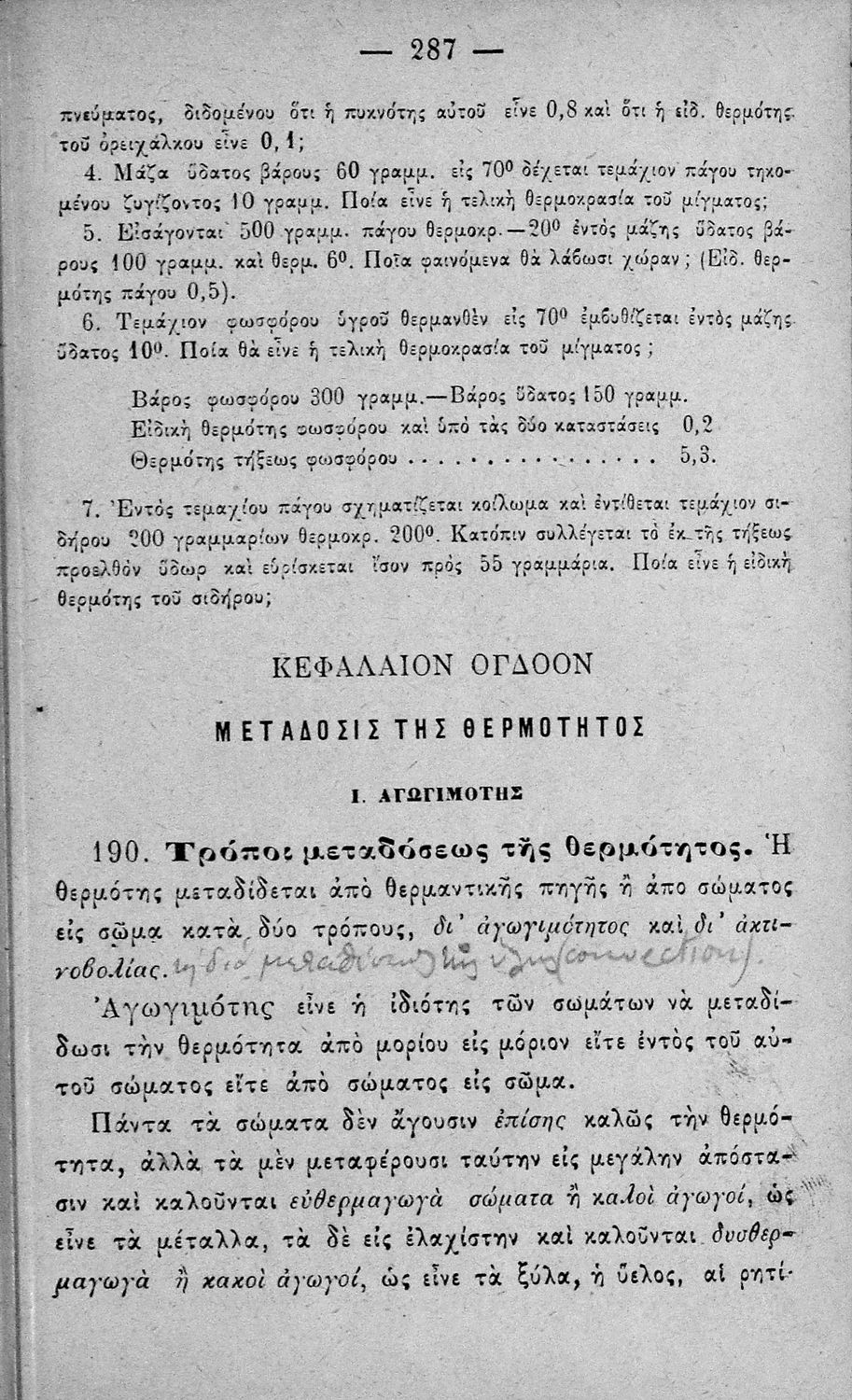 Σχολικό εγχειρίδιο για τις Τάξεις του Γυμνασίου και Διδασκαλείων για το μάθημα της Φυσικής στην Δευτεροβάθμια Εκπαίδευση. Παρέχει βασικές γνώσεις της φυσικής επιστήμης και αναλύει τις ιδιότητες των σωμάτων, καθώς και της θερμότητας, του ηλεκτρισμού και του μαγνητισμού, τις δυνάμεις, την πίεση. Περιέχει εικόνες και σχεδιαγράμματα τα οποία βοηθούν τη διδασκαλία.