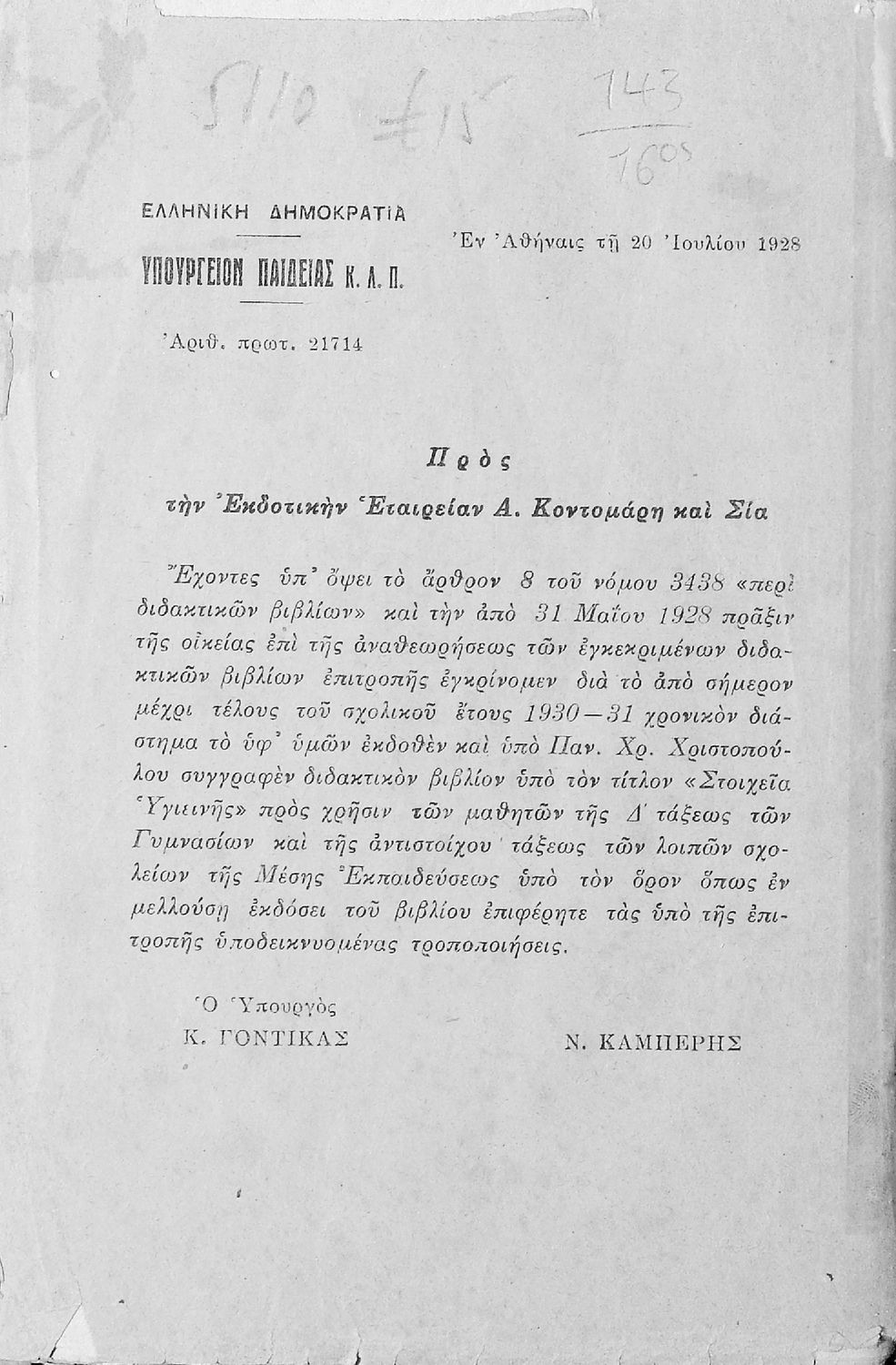 Εκδότης: Εκδοτική Εταιρεία Α.Μ. Κοντομάρης & ΣΙΑ