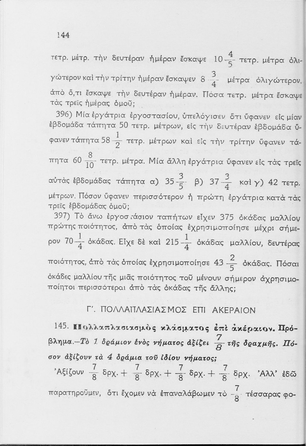 Σχολικό εγχειρίδιο Αριθμητικής για τα Γυμνάσια και Αστικά Σχολεία που είναι χωρισμένο σε θεωρία και ασκήσεις με έντονο επιχειρηματικό προσανατολισμό. Περιλαμβάνει στοιχεία Θεωρητικής Αριθμητικής.