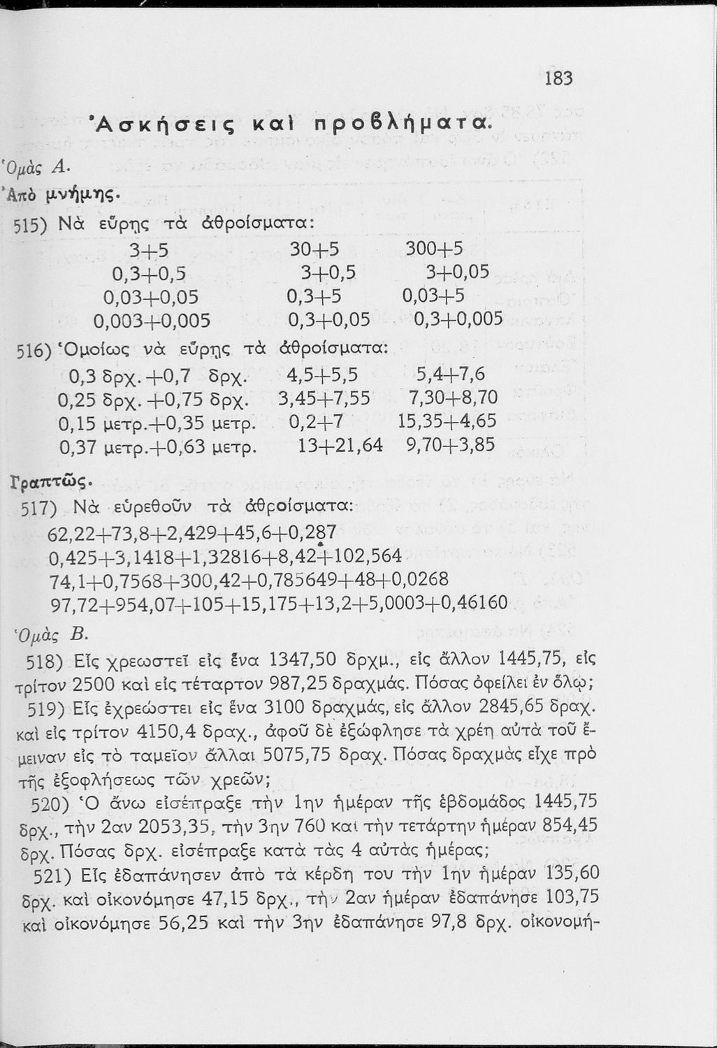 Σχολικό εγχειρίδιο Αριθμητικής για τα Γυμνάσια και τα Αστικά σχολεία που είναι χωρισμένο σε θεωρία και ασκήσεις με έντονο επιχειρηματικό προσανατολισμό. Περιλαμβάνει στοιχεία Θεωρητικής Αριθμητικής.