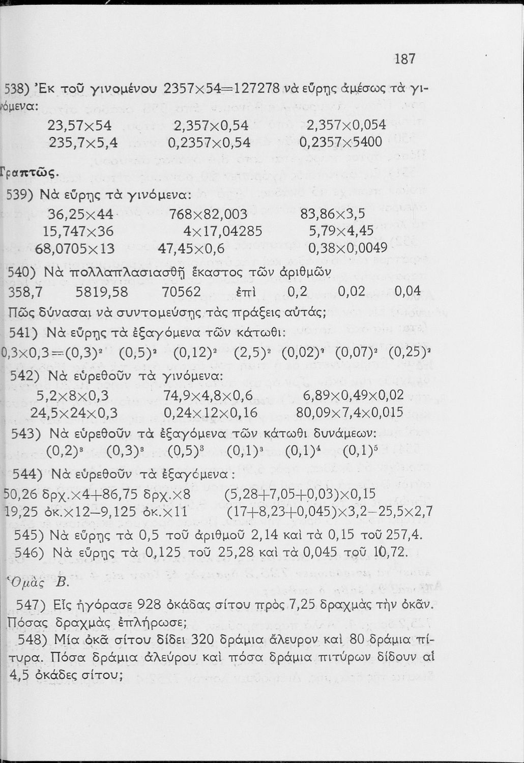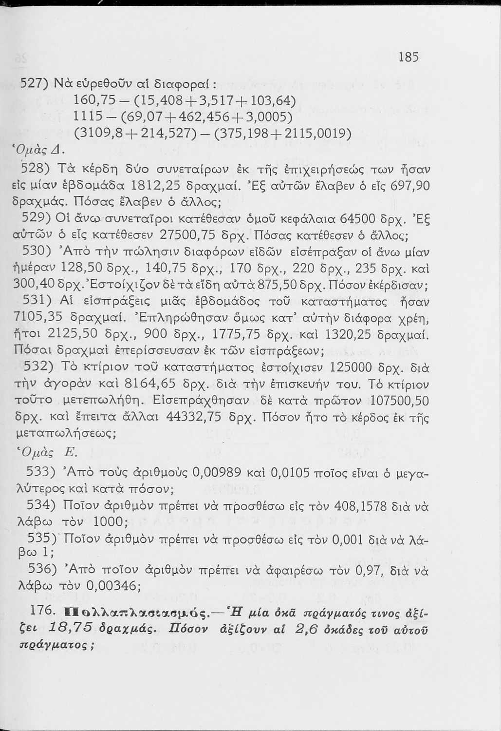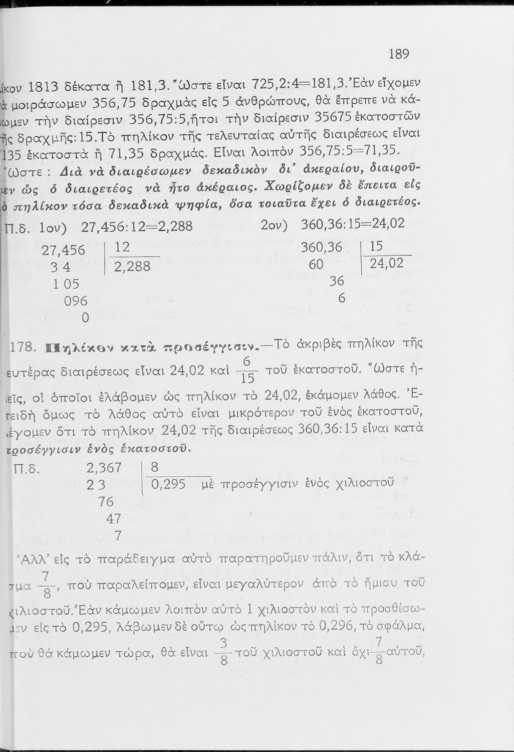 Σχολικό εγχειρίδιο Αριθμητικής για τα Γυμνάσια και Αστικά Σχολεία που είναι χωρισμένο σε θεωρία και ασκήσεις με έντονο επιχειρηματικό προσανατολισμό. Περιλαμβάνει στοιχεία Θεωρητικής Αριθμητικής.