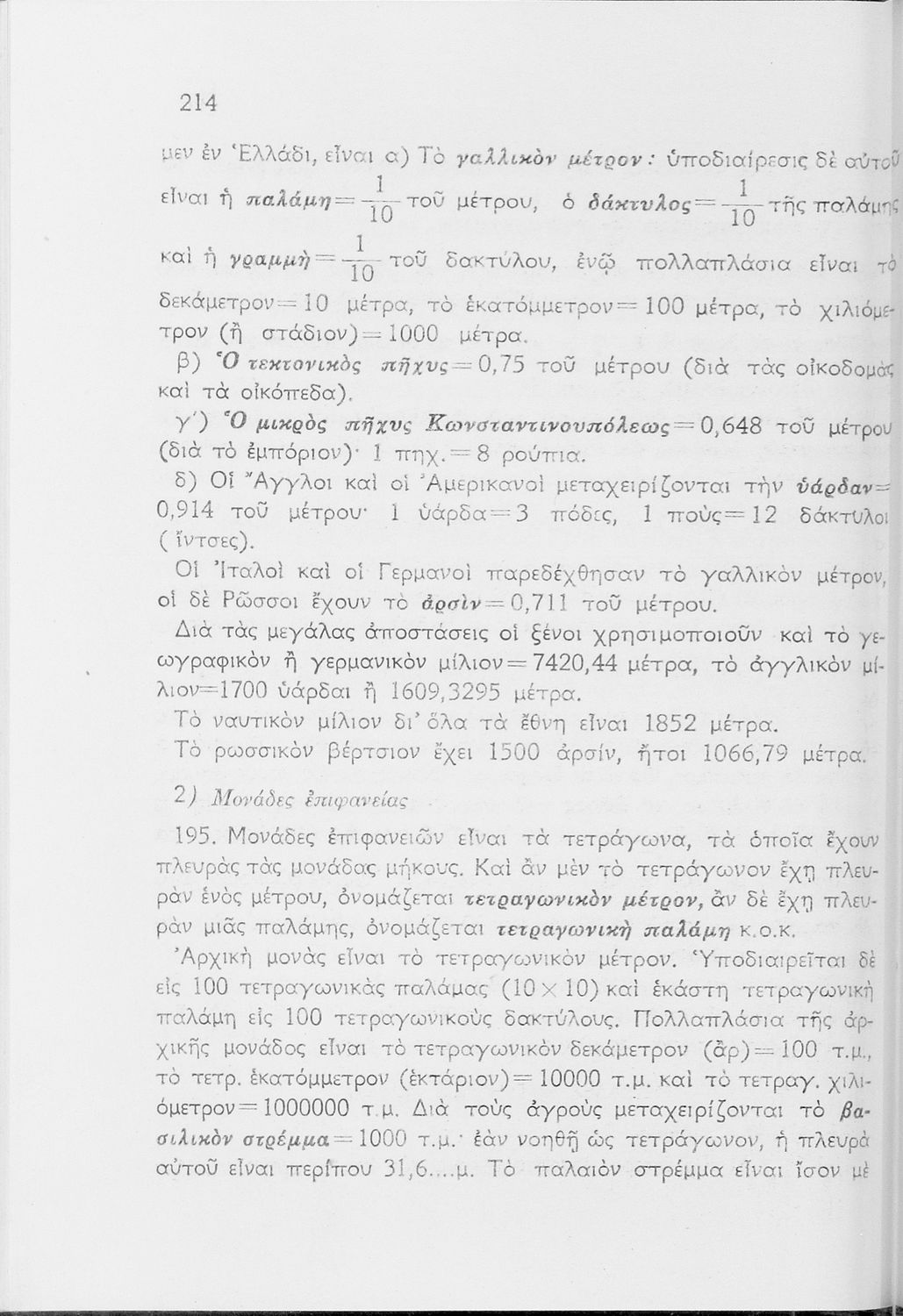Σχολικό εγχειρίδιο Γεωμετρίας Γυμνασίων και Αστικών Σχολείων χωρισμένο σε Επιπεδομετρία και Στερεομετρία. Περιλαμβάνει και στοιχεία Χωρομετρίας.