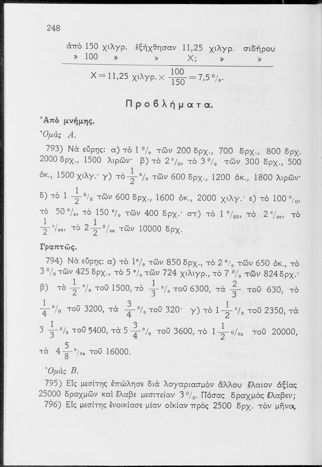 Σχολικό εγχειρίδιο Αριθμητικής για τα Γυμνάσια και τα Αστικά σχολεία που είναι χωρισμένο σε θεωρία και ασκήσεις με έντονο επιχειρηματικό προσανατολισμό. Περιλαμβάνει στοιχεία Θεωρητικής Αριθμητικής.
