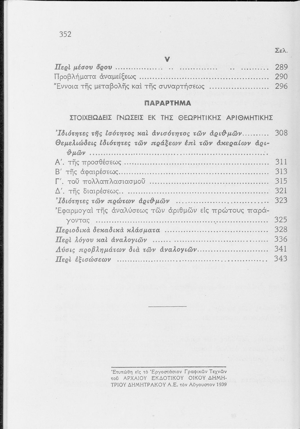 Σχολικό εγχειρίδιο Αριθμητικής για τα Γυμνάσια και τα Αστικά σχολεία που είναι χωρισμένο σε θεωρία και ασκήσεις με έντονο επιχειρηματικό προσανατολισμό. Περιλαμβάνει στοιχεία Θεωρητικής Αριθμητικής.
