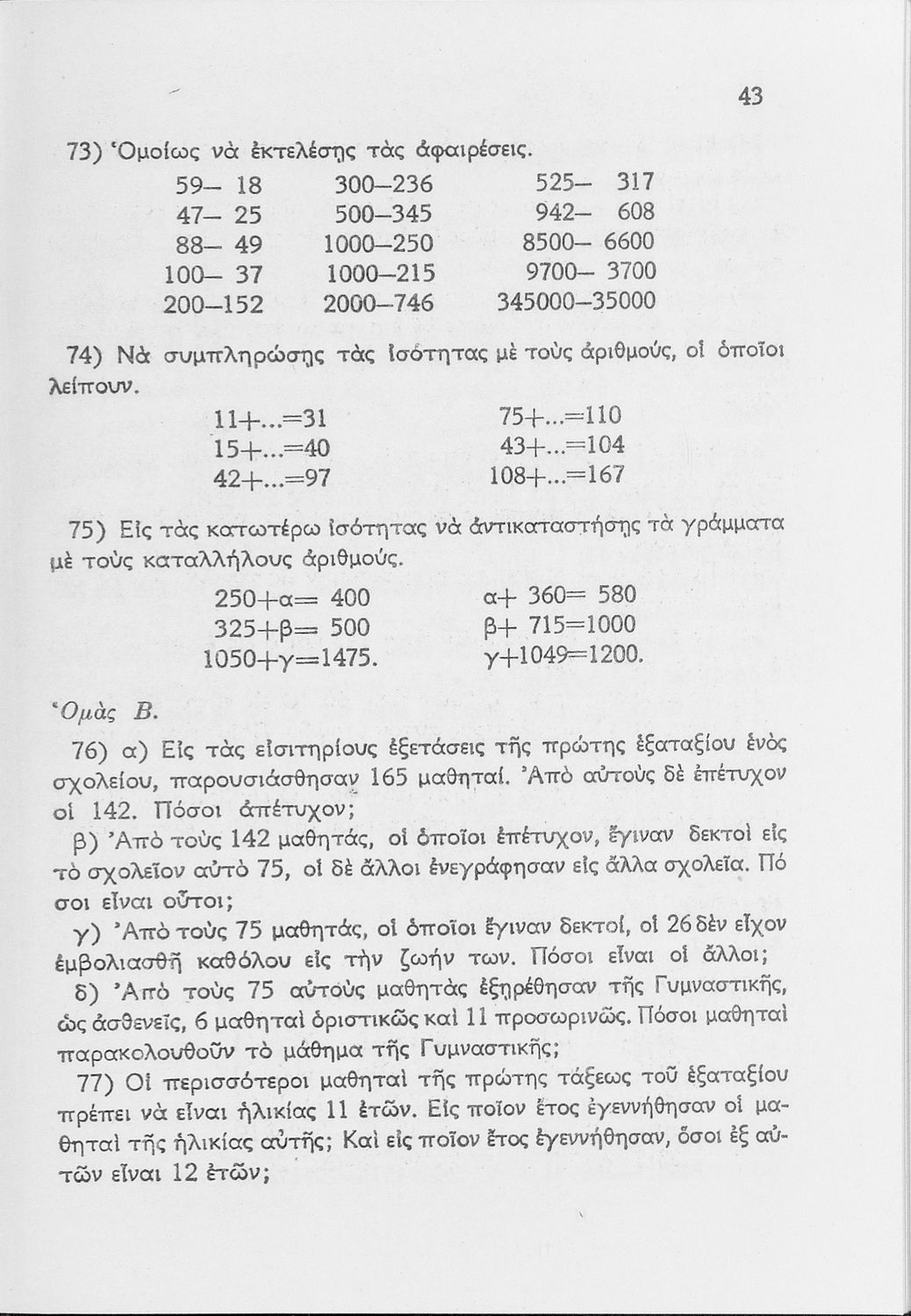 Τάξη:  Οκτατάξιο Γυμνάσιο / Πεντατάξιο Προγυμνάσιο / Αστικό Σχολείο
