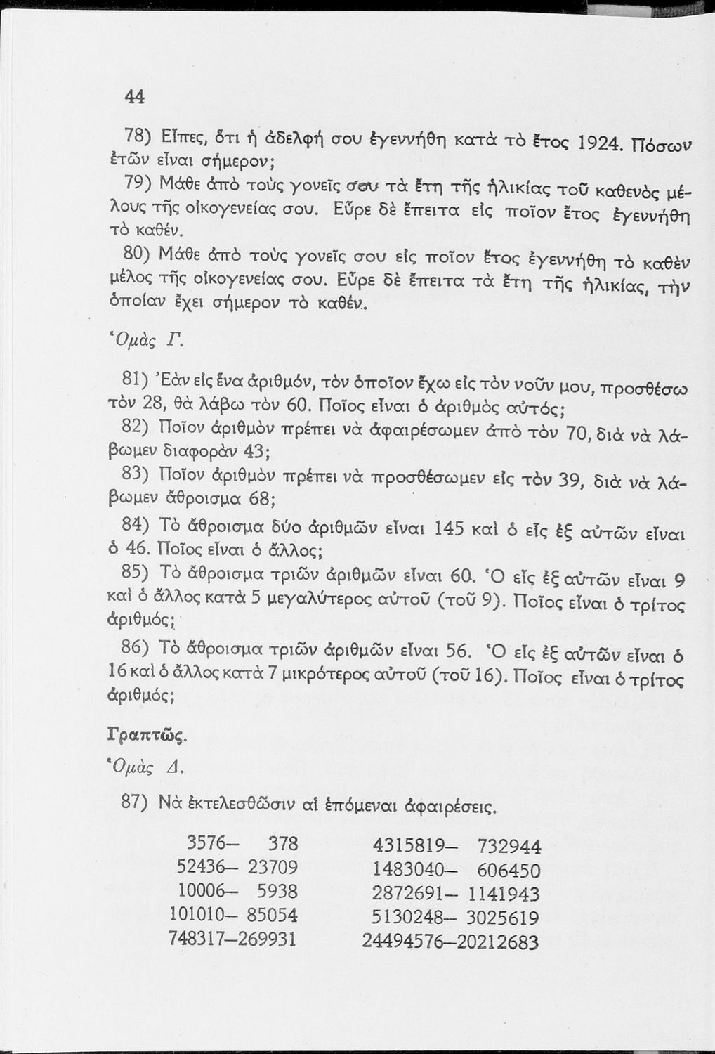 Σχολικό εγχειρίδιο Αριθμητικής για τα Γυμνάσια και τα Αστικά σχολεία που είναι χωρισμένο σε θεωρία και ασκήσεις με έντονο επιχειρηματικό προσανατολισμό. Περιλαμβάνει στοιχεία Θεωρητικής Αριθμητικής.