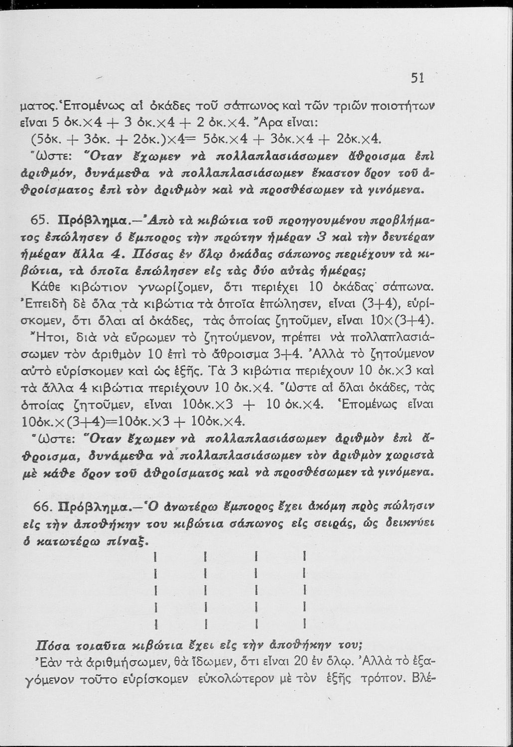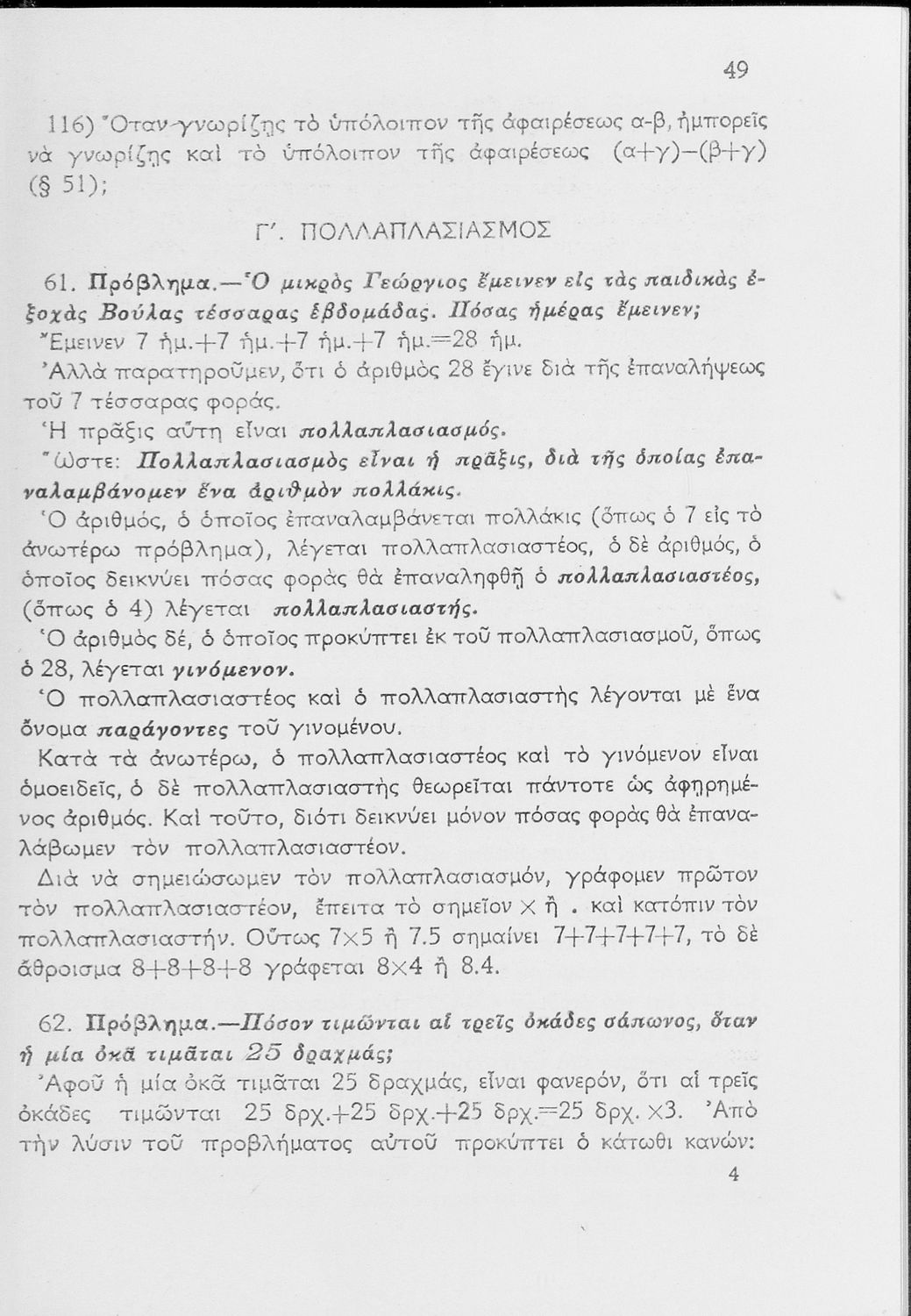 Σχολικό εγχειρίδιο Αριθμητικής για τα Γυμνάσια και Αστικά Σχολεία που είναι χωρισμένο σε θεωρία και ασκήσεις με έντονο επιχειρηματικό προσανατολισμό. Περιλαμβάνει στοιχεία Θεωρητικής Αριθμητικής.