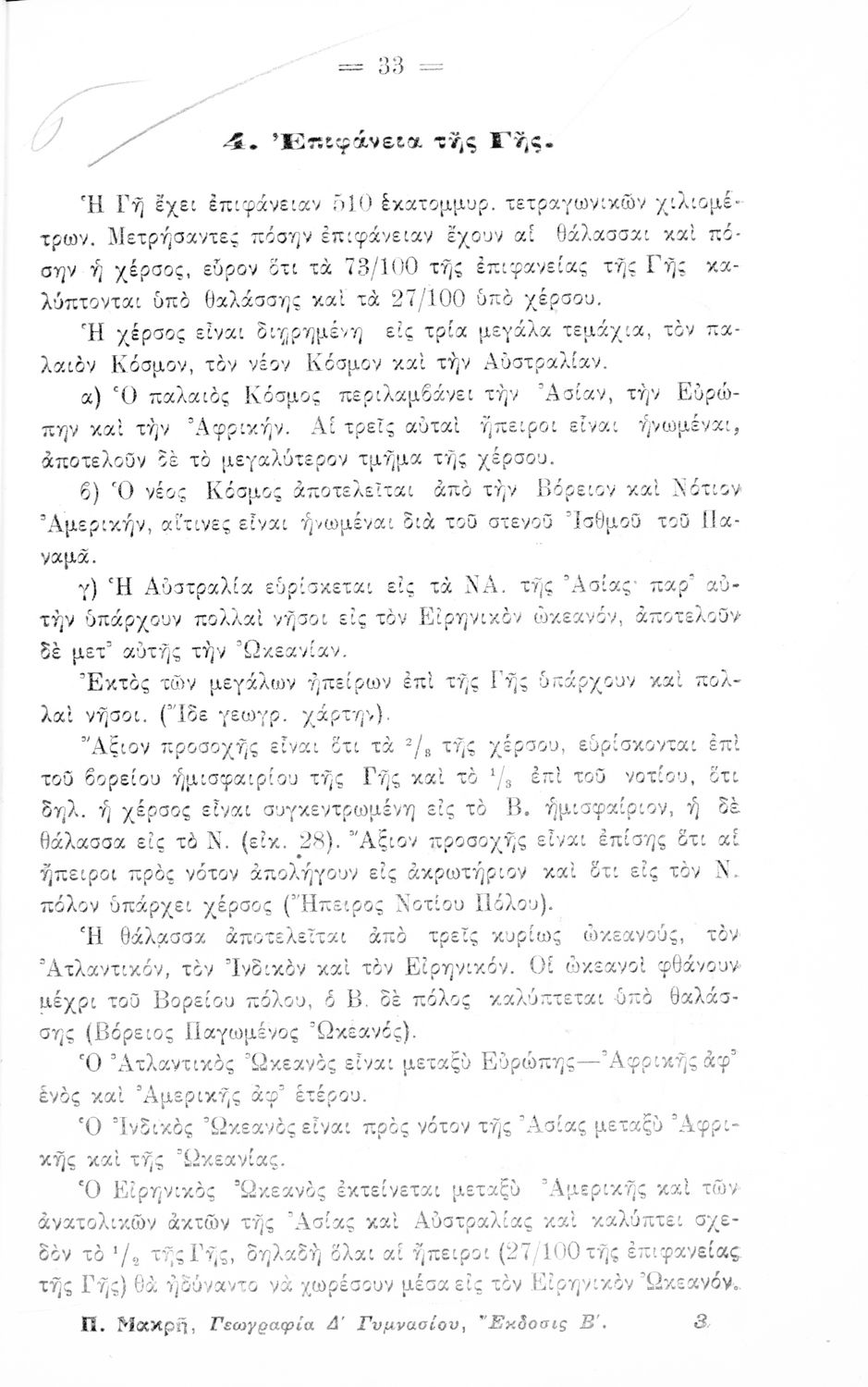 Σχολικό εγχειρίδιο Γεωγραφίας Δ' Γυμνασίου που περιλαμβάνει στοιχεία φυσικής και μαθηματικής γεωγραφίας και γεωλογίας.