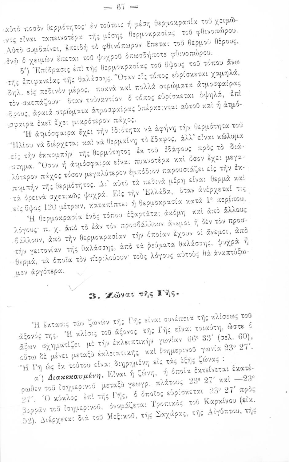 Σχολικό εγχειρίδιο Γεωγραφίας Δ΄ Γυμνασίου που περιλαμβάνει στοιχεία ιστορικής γεωλογίας, και φυσικής και μαθηματικής γεωγραφίας και εστιάζει στη βιογεωγραφία και του κλίμα της Ελλάδας.