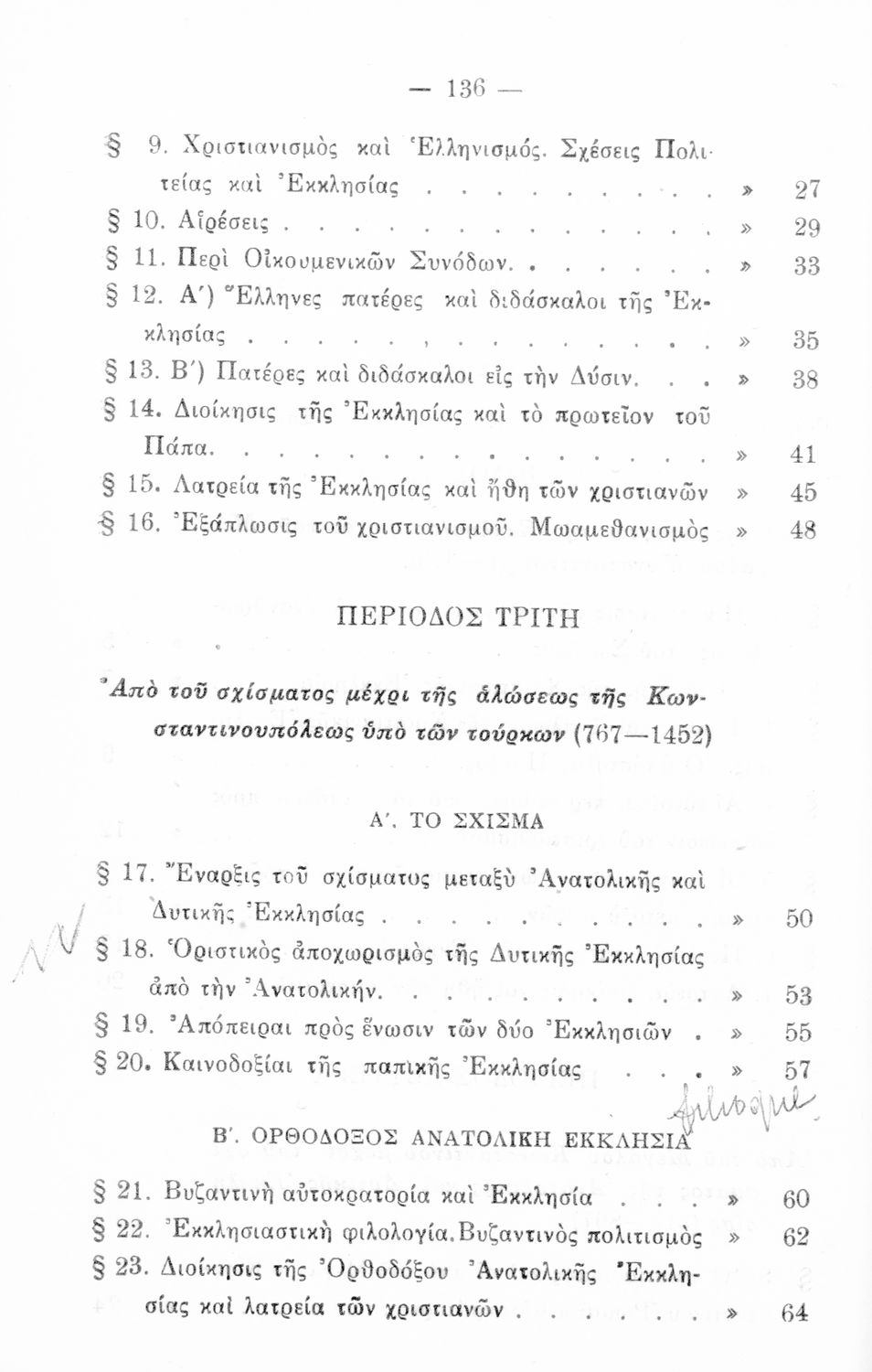 Σχολικό εγχειρίδιο Θρησκευτικών Γ' Γυμνασίου που περιέχει την ιστορία της Εκκλησίας από την ίδρυσή της μέχρι την δημιουργία της Εκκλησίας της Ελλάδας.