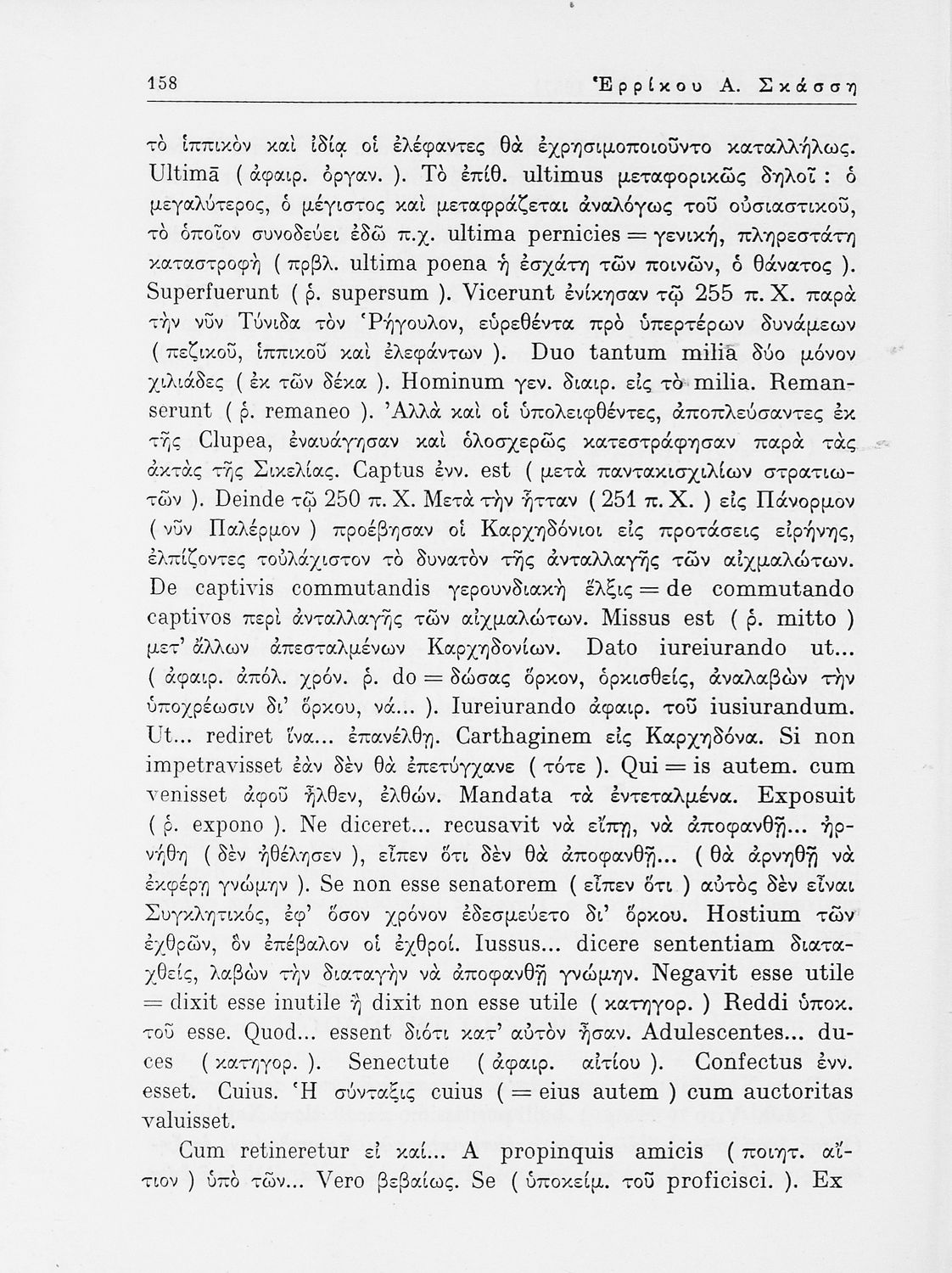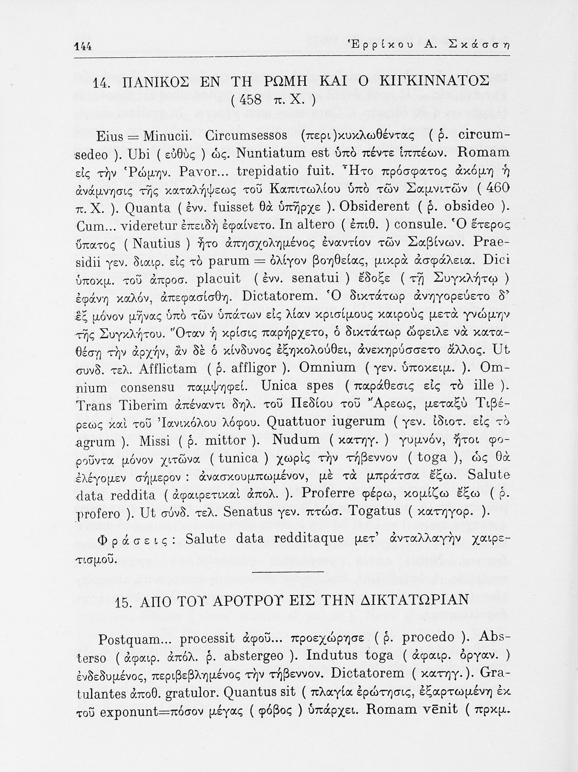 Σχολικό εγχειρίδιο Λατινικών για τη Γ΄ Γυμνασίου που περιέχει 54 κείμενα/περικοπές στα λατινικά, ερμηνευτικά υπομνήματα, λεξιλόγιο και κατάλογο με τα συντακτικά φαινόμενα (αφαιρετική, προθέσεις, σύνδεσμοι) που