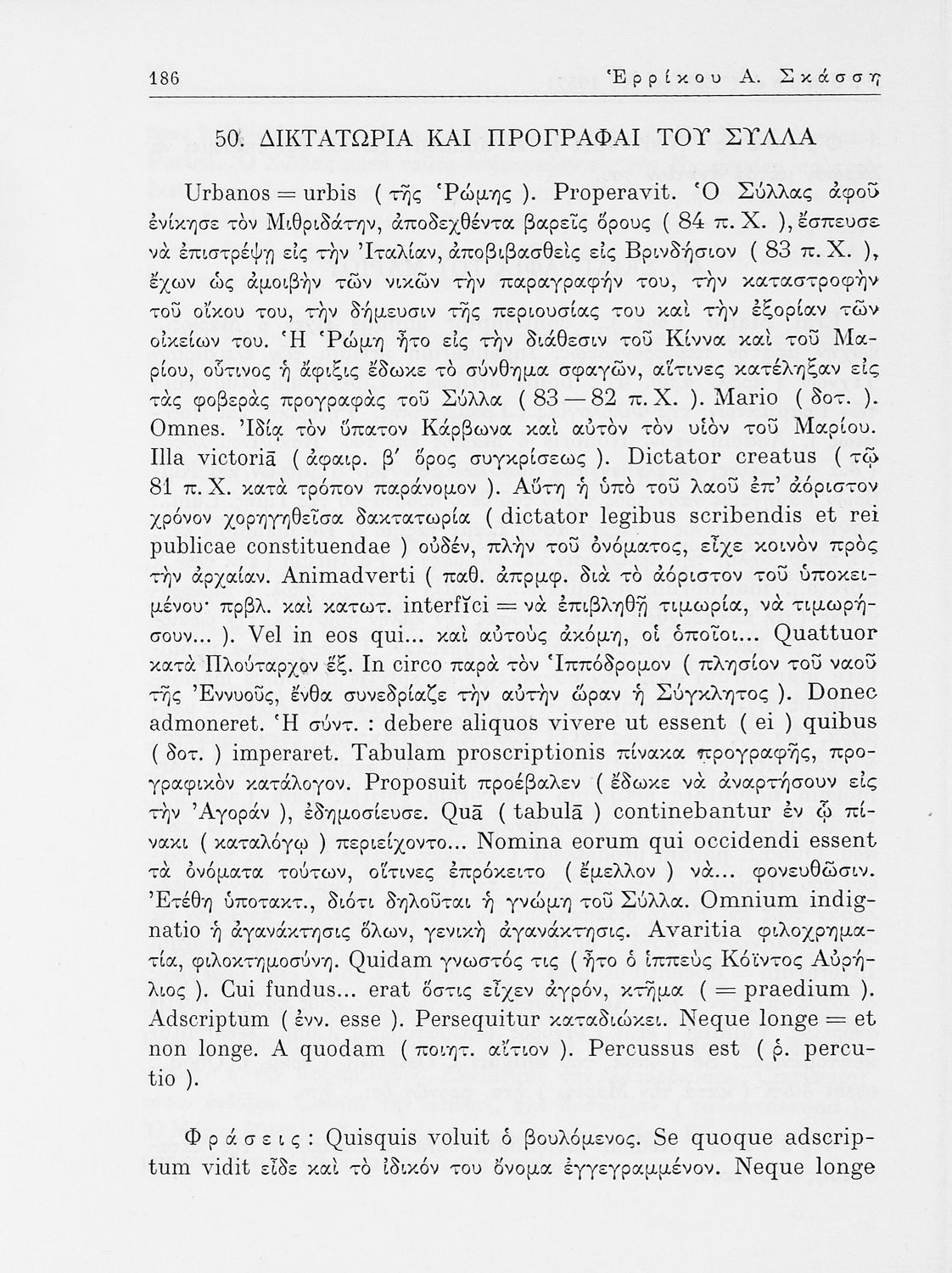 Αναγνωστικό Λατινικών για τη Γ΄ Γυμνασίου που περιέχει 54 κείμενα/περικοπές στα λατινικά, ερμηνευτικά υπομνήματα, λεξιλόγιο και κατάλογο με τα συντακτικά φαινόμενα (αφαιρετική, προθέσεις, σύνδεσμοι) που διδάσκονται με βάση τις περικοπές. Αναγνωστικό Λατινικών που περιέχει σύντομο βιογραφικό σημείωμα του Lhomond, 64 αποσπάσματα από το βιβλίο του, ερμηνευτικές σημειώσεις και λεξιλόγιο. Παρουσιάζει βίους επιφανών Ρωμαίων από το 753 π.Χ μέχρι το 14 μ.Χ. Ο επιμελητής ήταν καθηγητής της Λατινικής Φιλολογίας στο Πανεπιστήμιο Αθηνών.