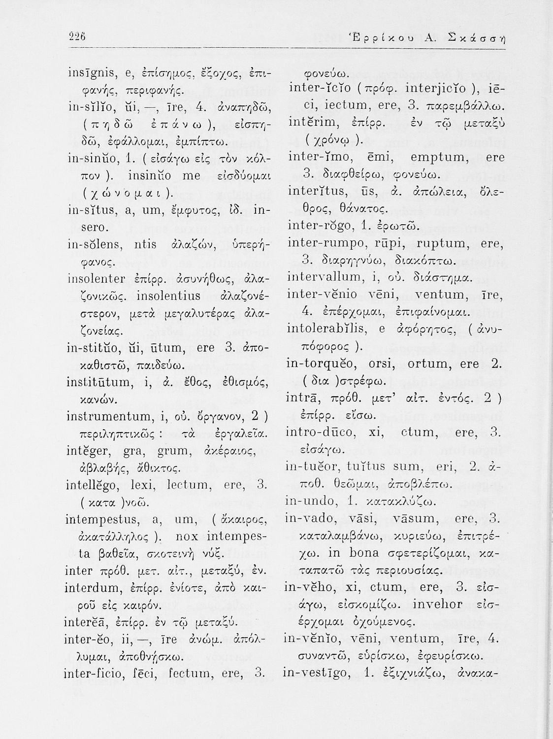 Σχολικό εγχειρίδιο Λατινικών για τη Γ΄ Γυμνασίου που περιέχει 54 κείμενα/περικοπές στα λατινικά, ερμηνευτικά υπομνήματα, λεξιλόγιο και κατάλογο με τα συντακτικά φαινόμενα (αφαιρετική, προθέσεις, σύνδεσμοι) που