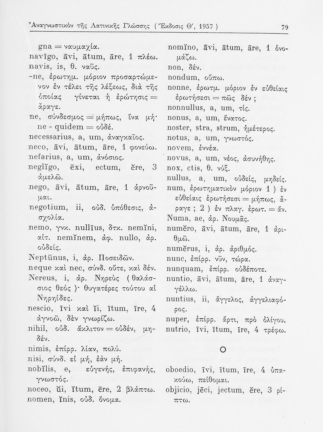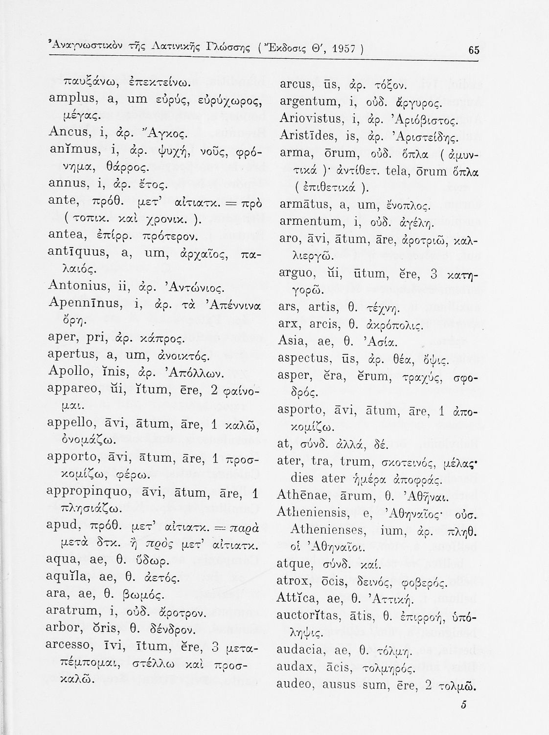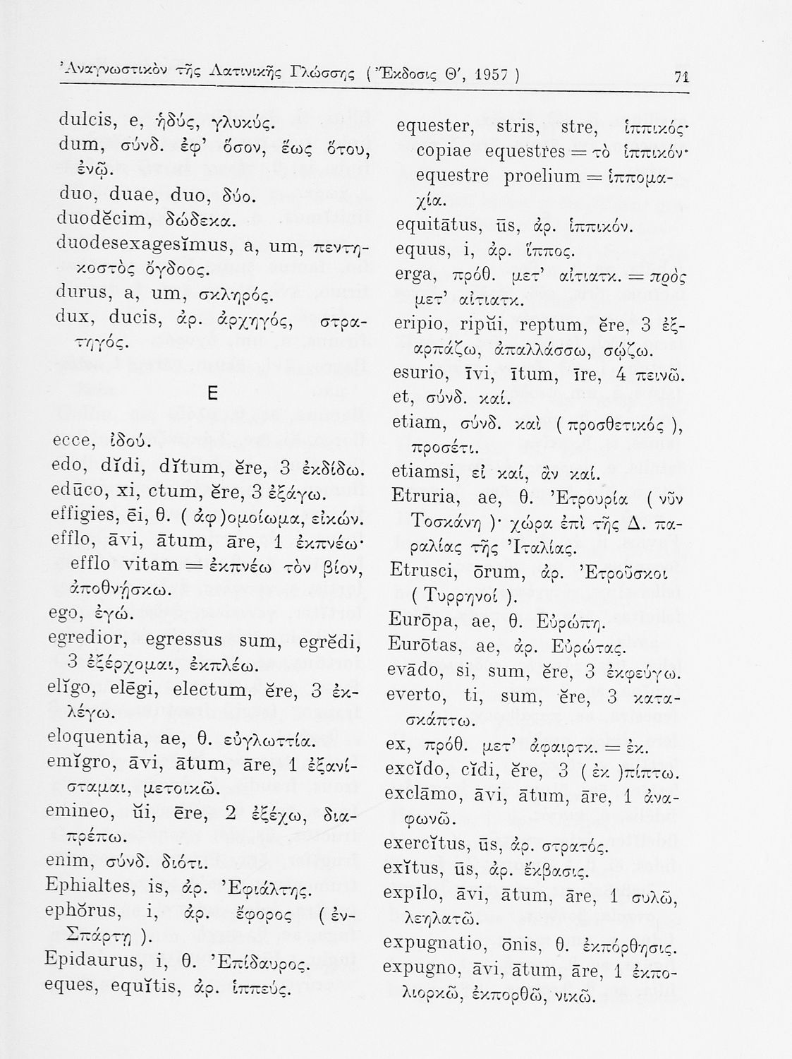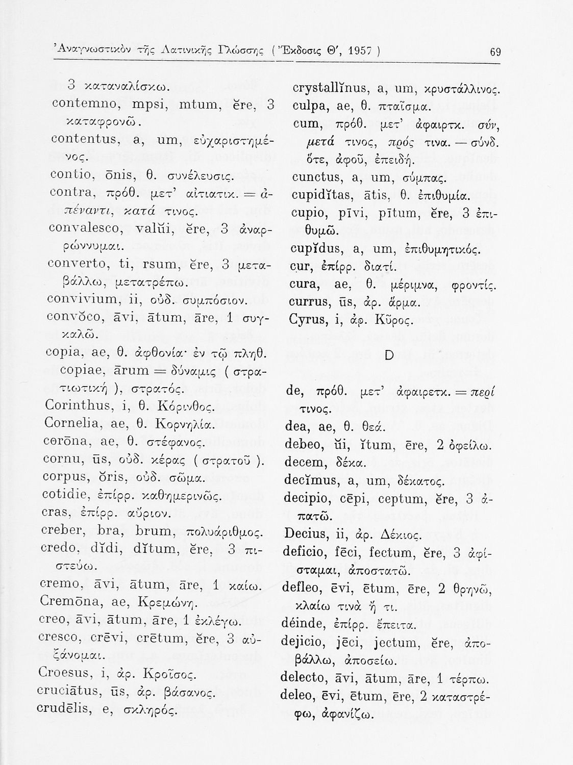 Σχολικό εγχειρίδιο Λατινικών για τη Γ΄ Γυμνασίου που περιέχει 54 κείμενα/περικοπές στα λατινικά, ερμηνευτικά υπομνήματα, λεξιλόγιο και κατάλογο με τα συντακτικά φαινόμενα (αφαιρετική, προθέσεις, σύνδεσμοι) που