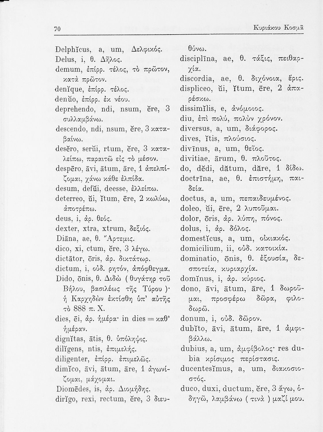 Αναγνωστικό Λατινικών για τη Γ΄ Γυμνασίου που περιέχει 54 κείμενα/περικοπές στα λατινικά, ερμηνευτικά υπομνήματα, λεξιλόγιο και κατάλογο με τα συντακτικά φαινόμενα (αφαιρετική, προθέσεις, σύνδεσμοι) που ...