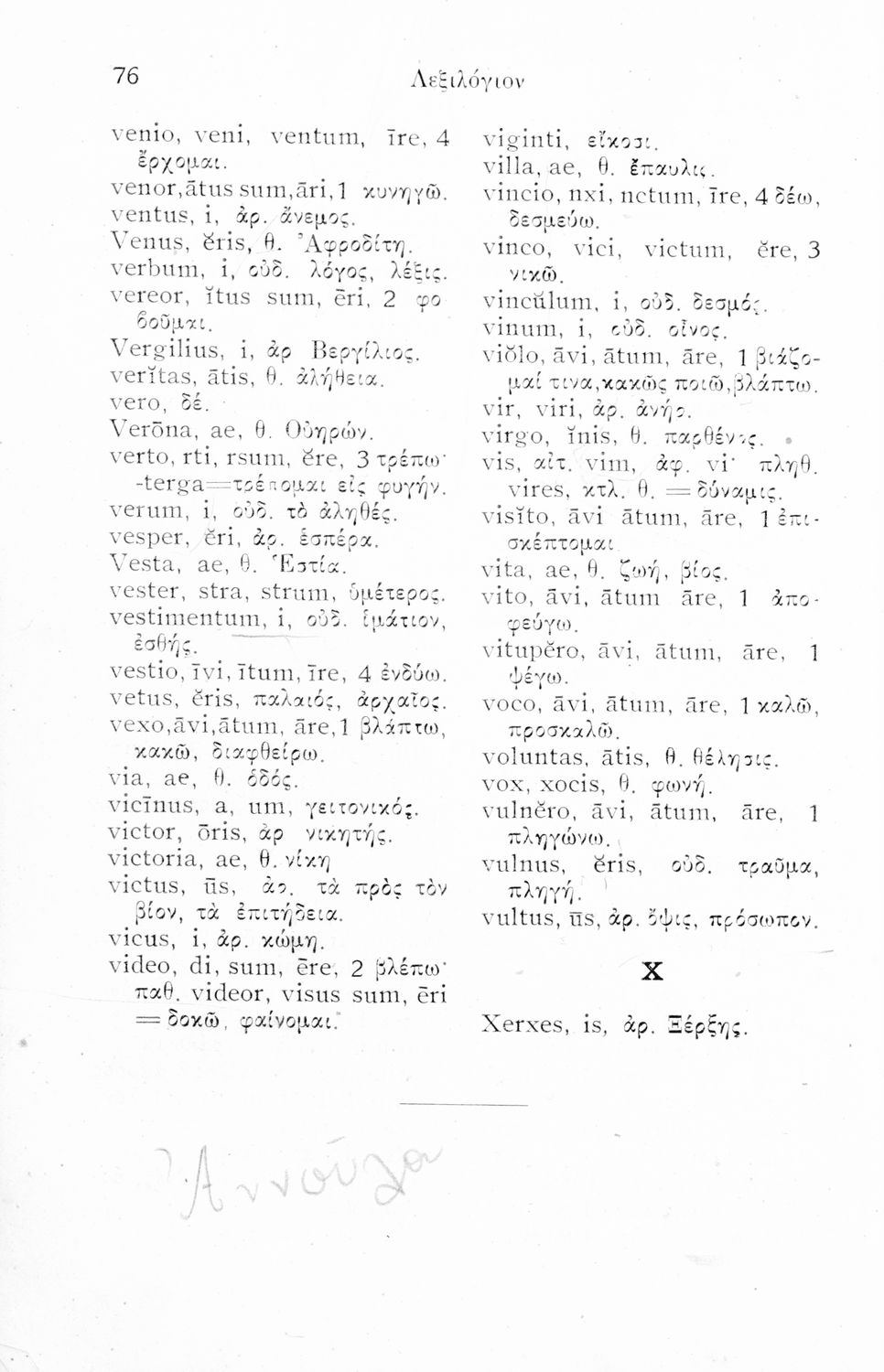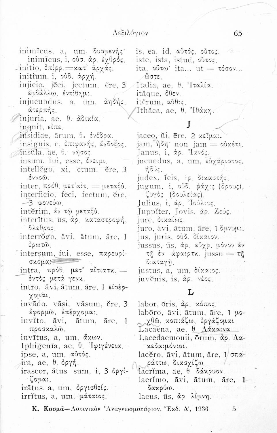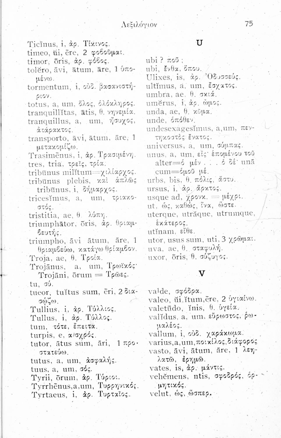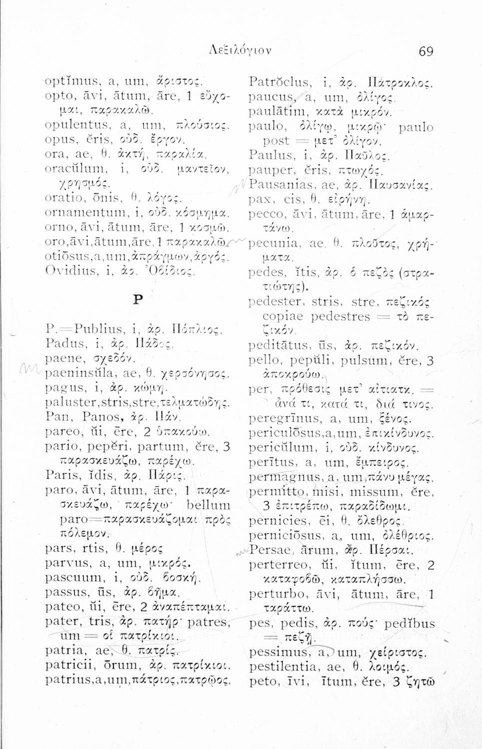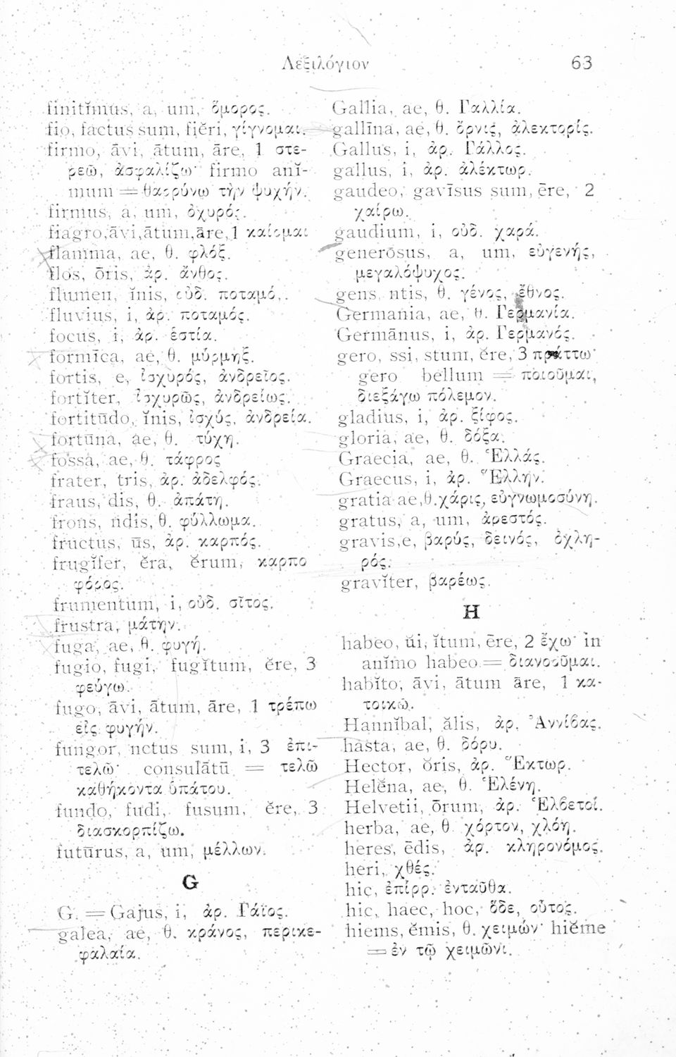 Σχολικό εγχειρίδιο Λατινικών για τη Γ΄ Γυμνασίου που περιέχει 54 κείμενα/περικοπές στα λατινικά, ερμηνευτικά υπομνήματα, λεξιλόγιο και κατάλογο με τα συντακτικά φαινόμενα (αφαιρετική, προθέσεις, σύνδεσμοι) που