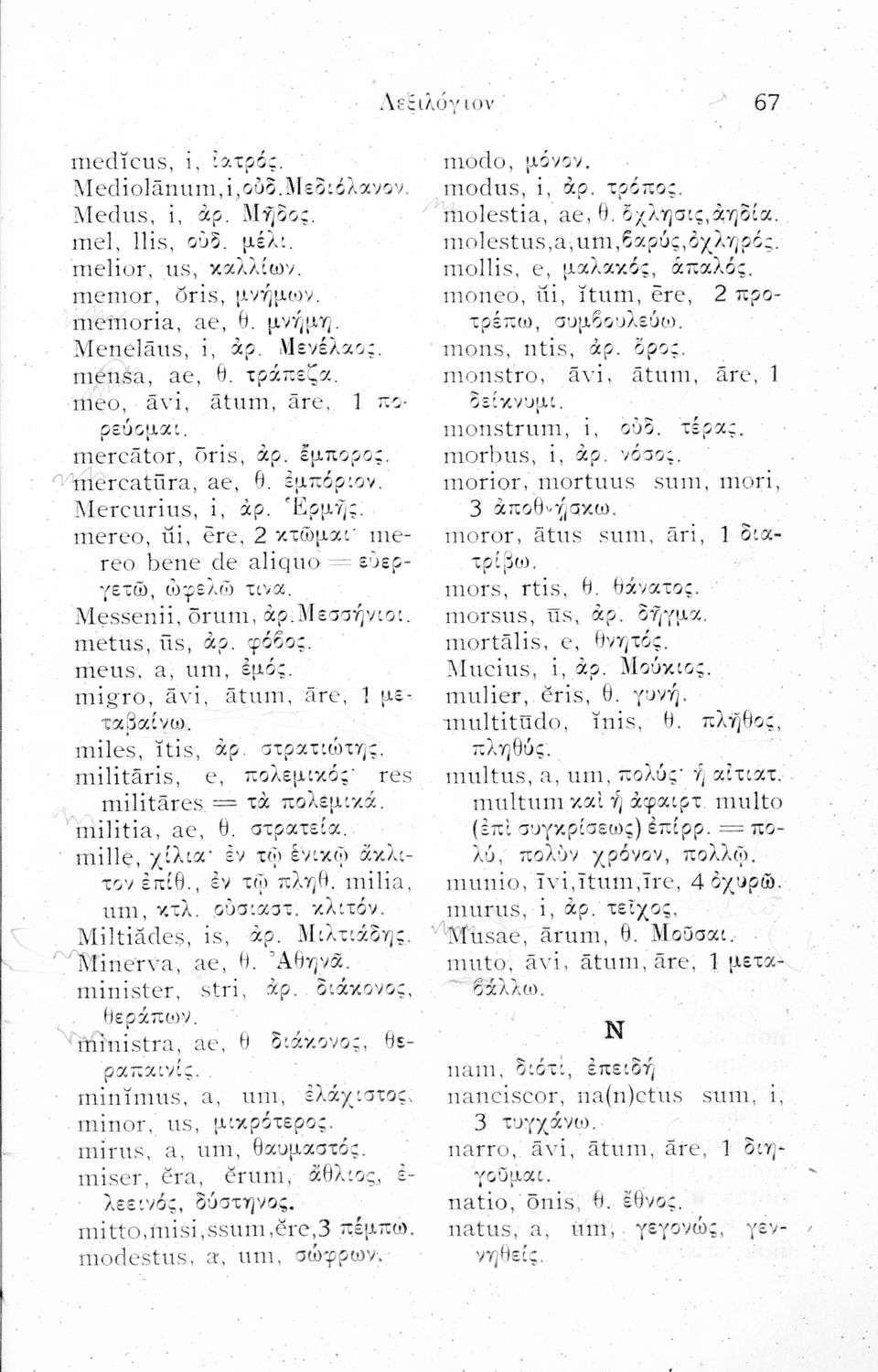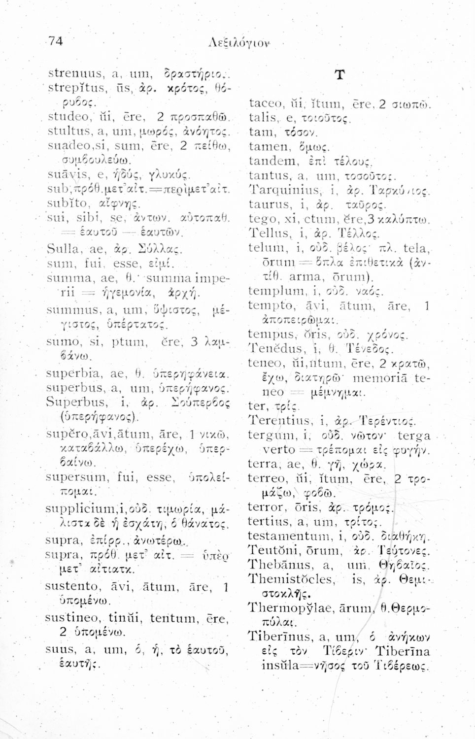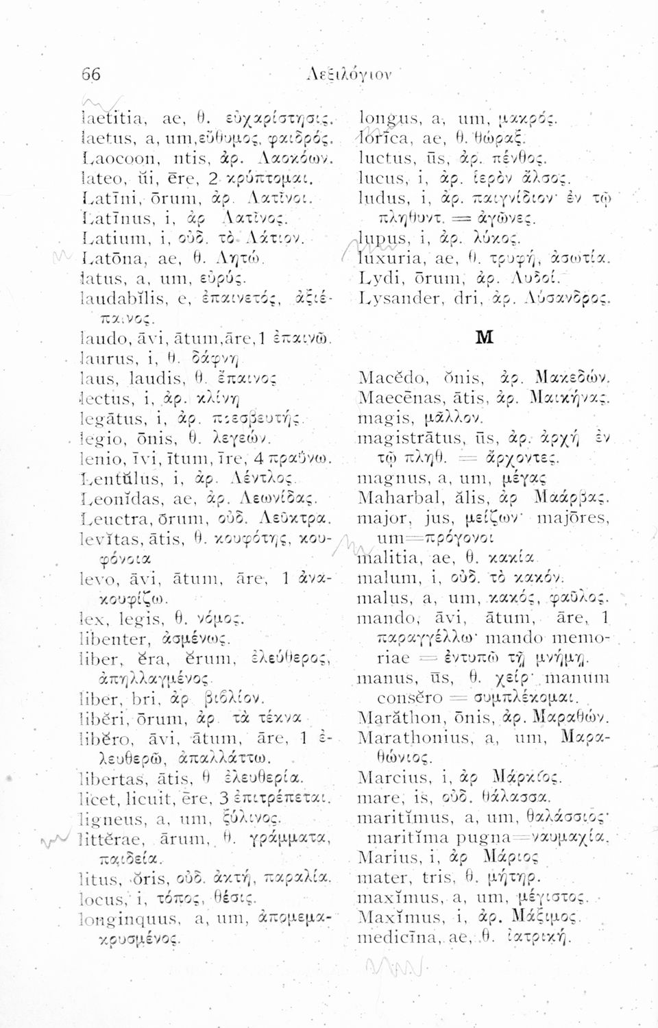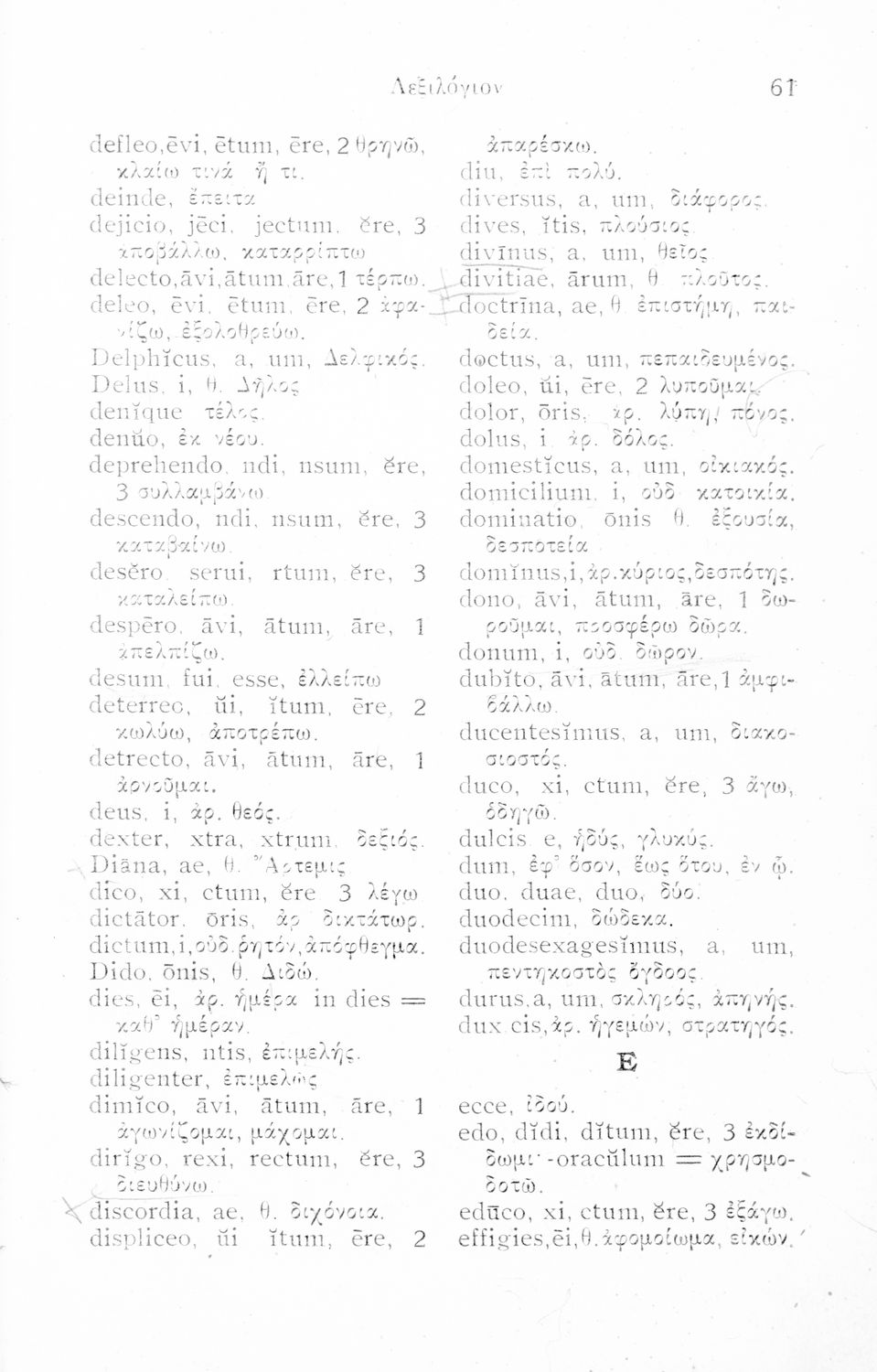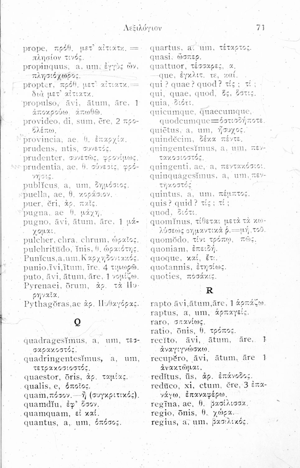 Σχολικό εγχειρίδιο Λατινικών για τη Γ΄ Γυμνασίου που περιέχει 54 κείμενα/περικοπές στα λατινικά, ερμηνευτικά υπομνήματα, λεξιλόγιο και κατάλογο με τα συντακτικά φαινόμενα (αφαιρετική, προθέσεις, σύνδεσμοι) που