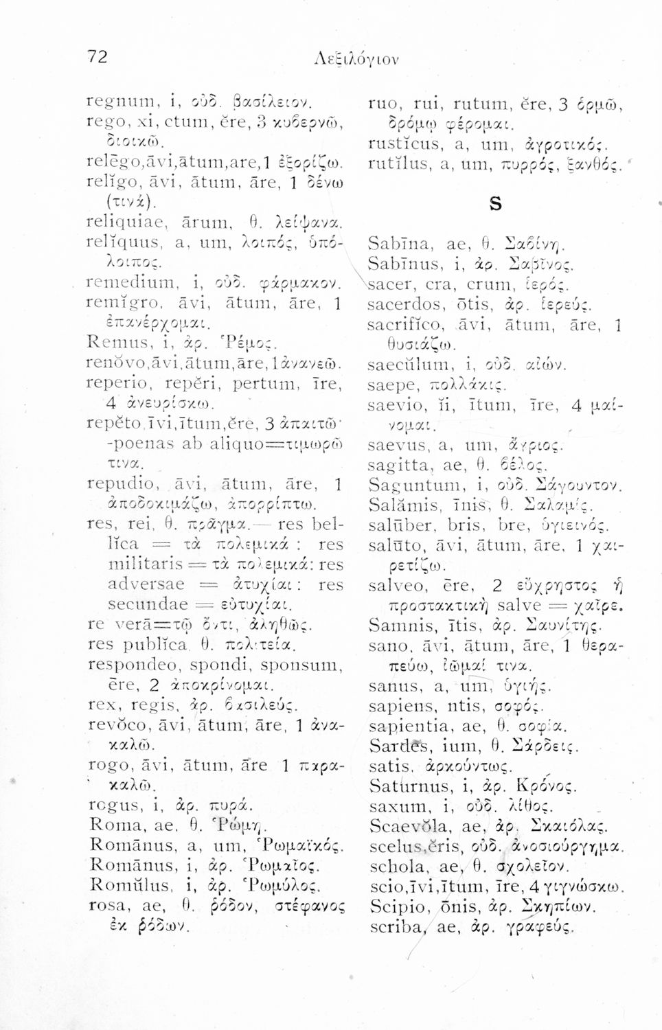 Σχολικό εγχειρίδιο Λατινικών για τη Δ΄ Γυμνασίου νέου τύπου και τη Γ΄ Γυμνασίου παλαιού τύπου που περιέχει 54 κείμενα/περικοπές στα λατινικά, ερμηνευτικά υπομνήματα και λεξιλόγιο κατάλογο με τα συντακτικά ...