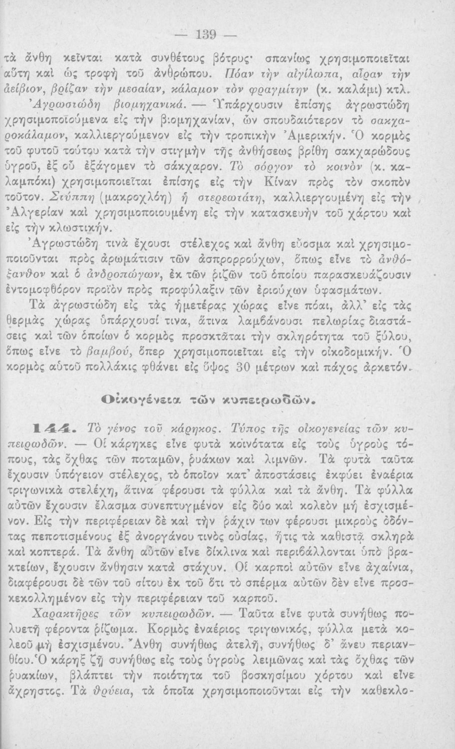Παρουσίαση περιεχομένου: Σχολικό εγχειρίδιο Φυτολογίας για το Γυμνάσιο με πληροφορίες για τη καλλιέργεια διάφορων φυτών. Περιέχει στοιχεία φυτικής Γεωγραφίας καθώς και Γεωλογίας. Ο συγγραφέας ήταν Γενικός Επιθεωρητής των Φυσικών. Το σύγγραμμα είχε εγκριθεί με βασιλικό διάταγμα από τις 26 Νοεμβρίου του 1916.