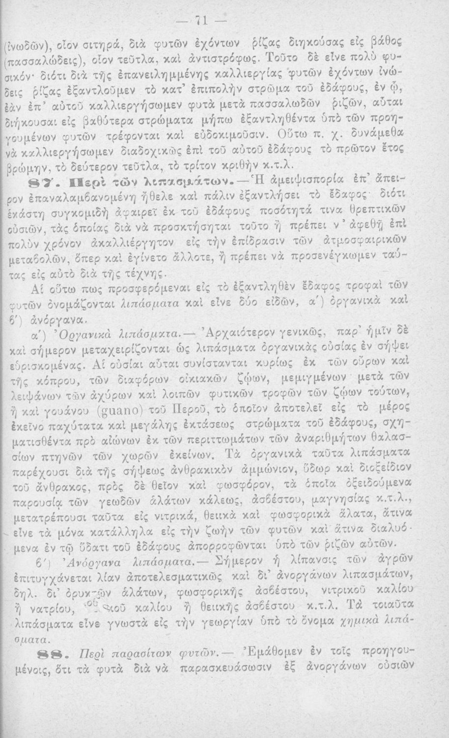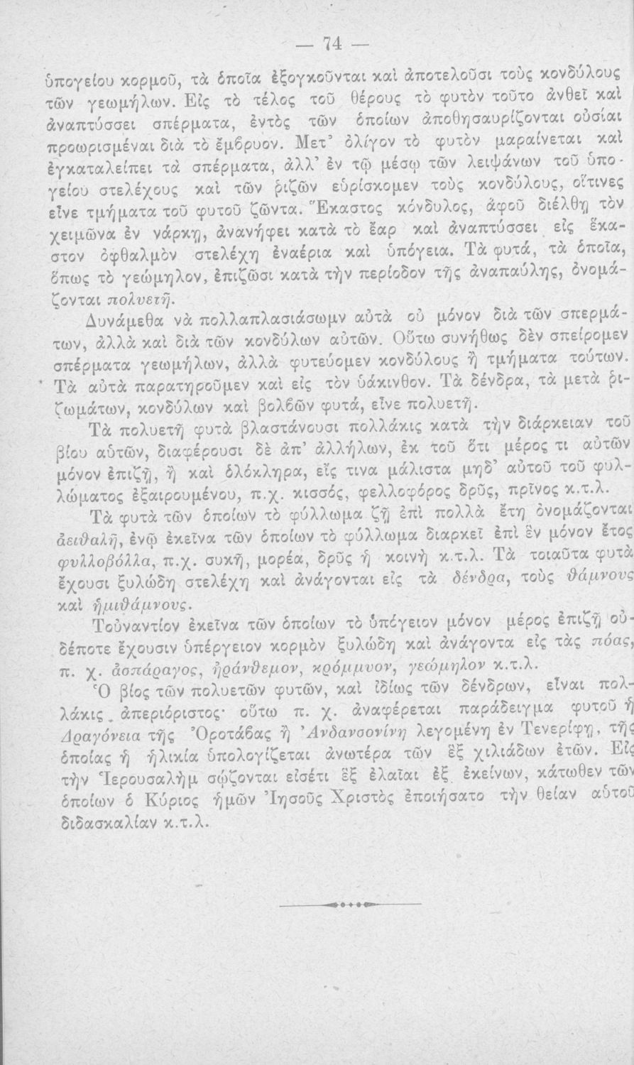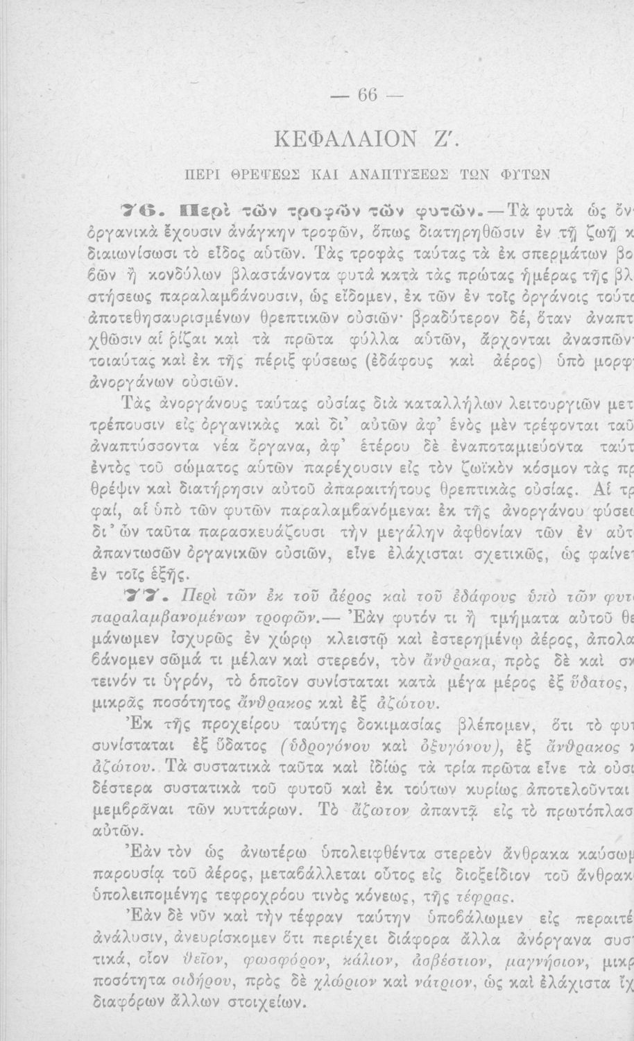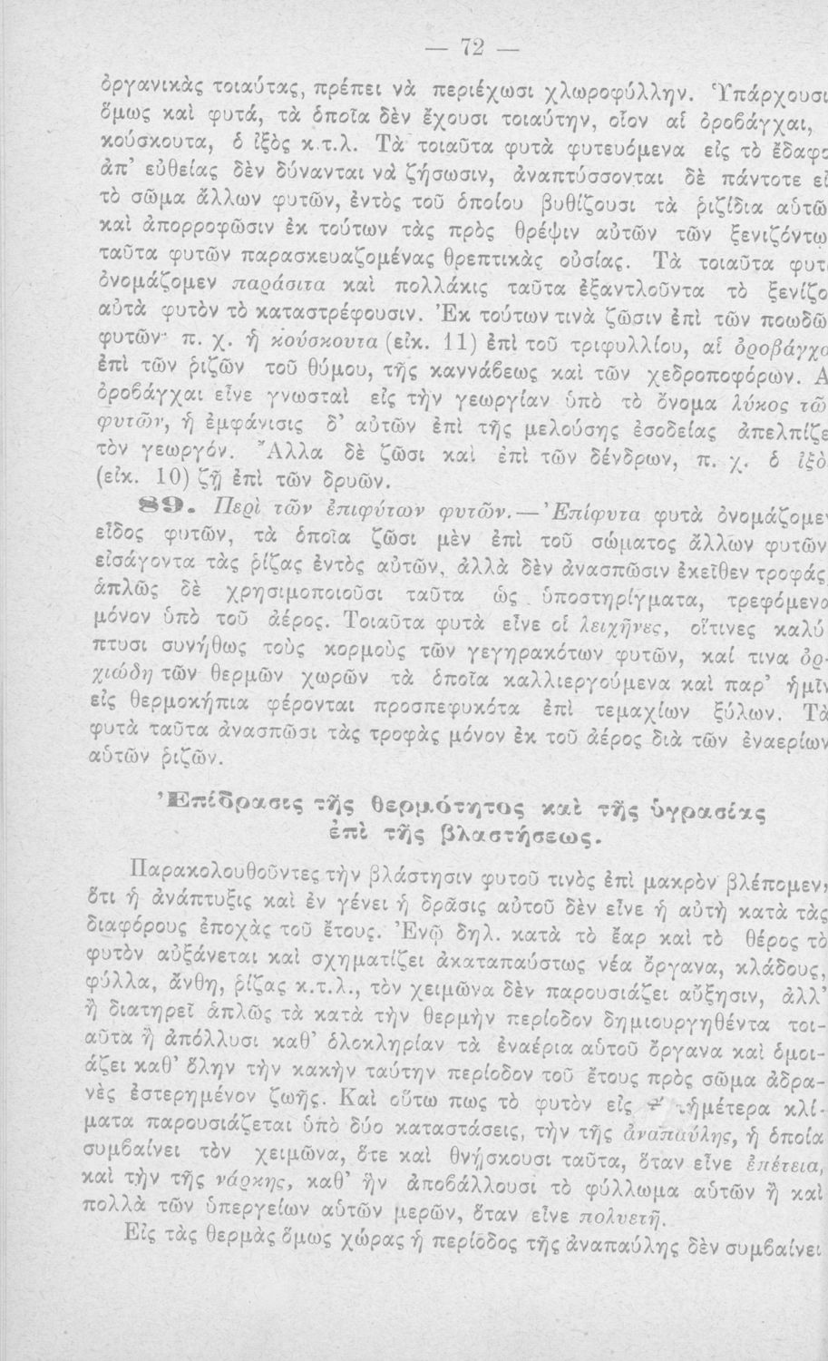 Σχολικό εγχειρίδιο Φυτολογίας για το Γυμνάσιο με πληροφορίες για τη καλλιέργεια διάφορων φυτών. Περιέχει στοιχεία φυτικής Γεωγραφίας καθώς και Γεωλογίας. Ο συγγραφέας ήταν Γενικός Επιθεωρητής των Φυσικών. Το σύγγραμμα είχε εγκριθεί με βασιλικό διάταγμα από τις 26 Νοεμβρίου του 1916.