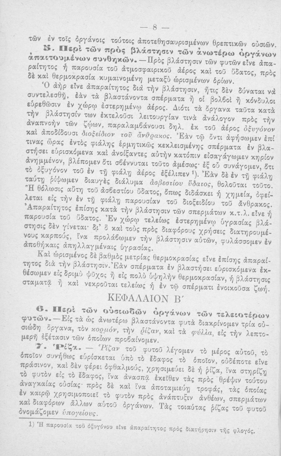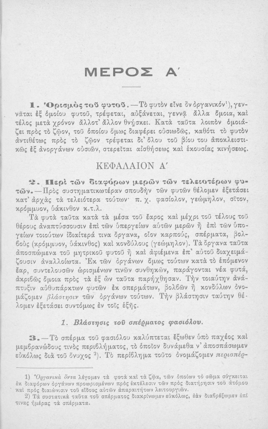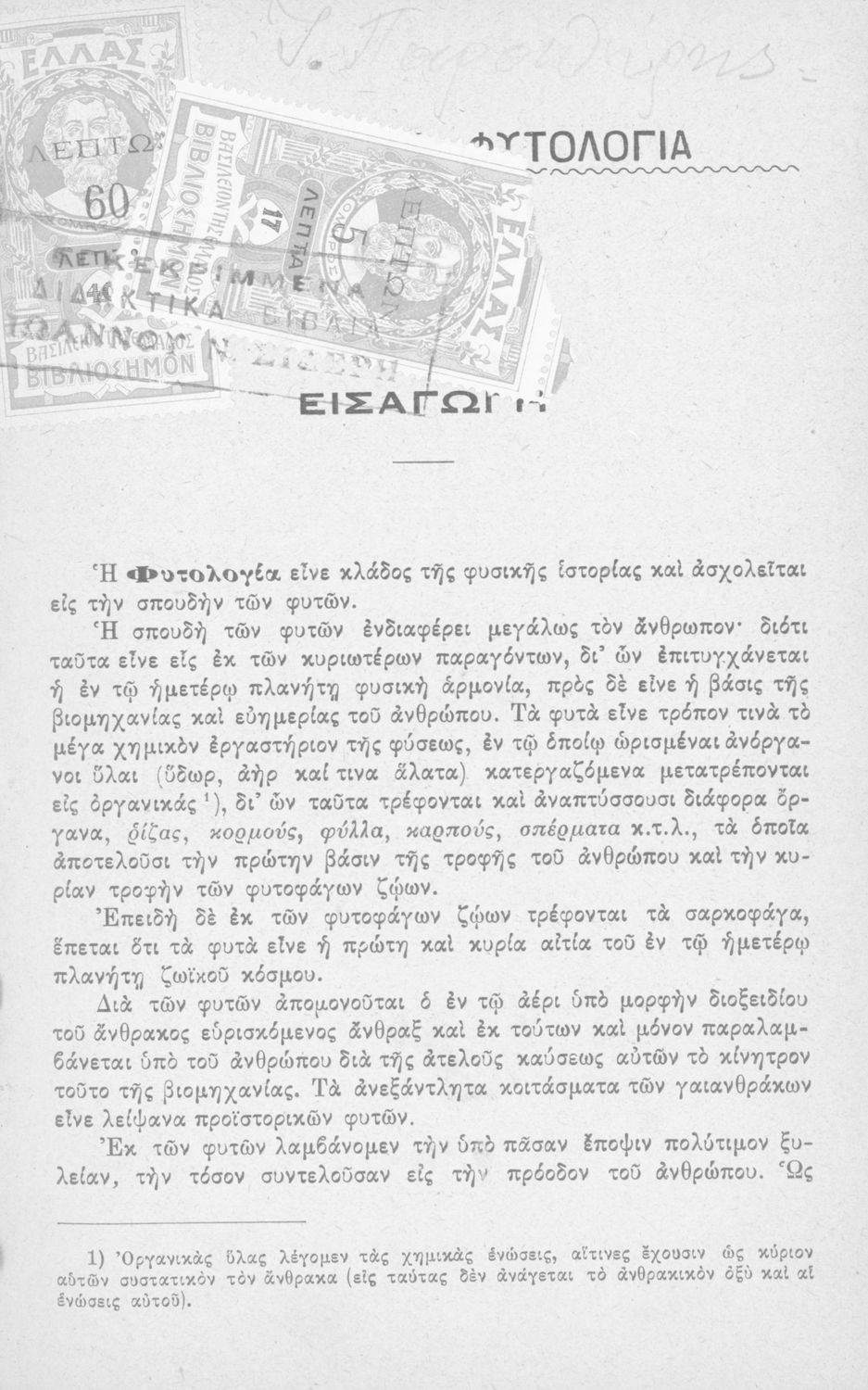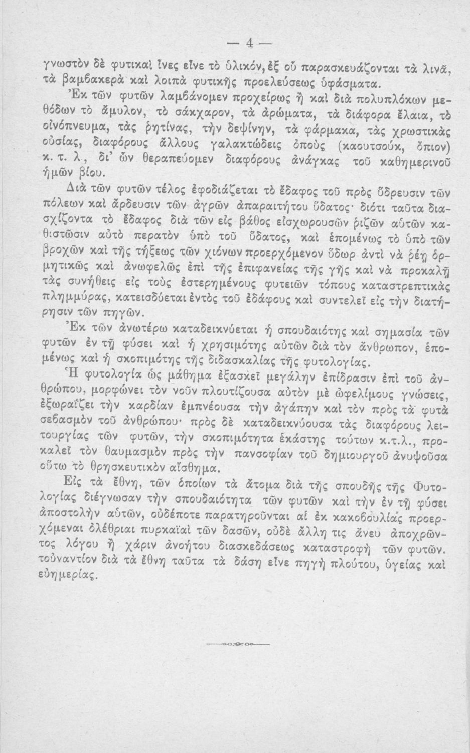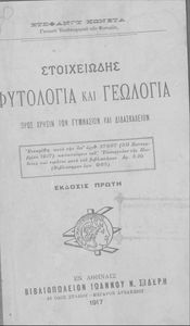 Σχολικό εγχειρίδιο Φυτολογίας για το Γυμνάσιο με πληροφορίες για τη καλλιέργεια διάφορων φυτών. Περιέχει στοιχεία φυτικής Γεωγραφίας καθώς και Γεωλογίας. Ο συγγραφέας ήταν Γενικός Επιθεωρητής των Φυσικών. Το σύγγραμμα είχε εγκριθεί με βασιλικό διάταγμα από τις 26 Νοεμβρίου του 1916.