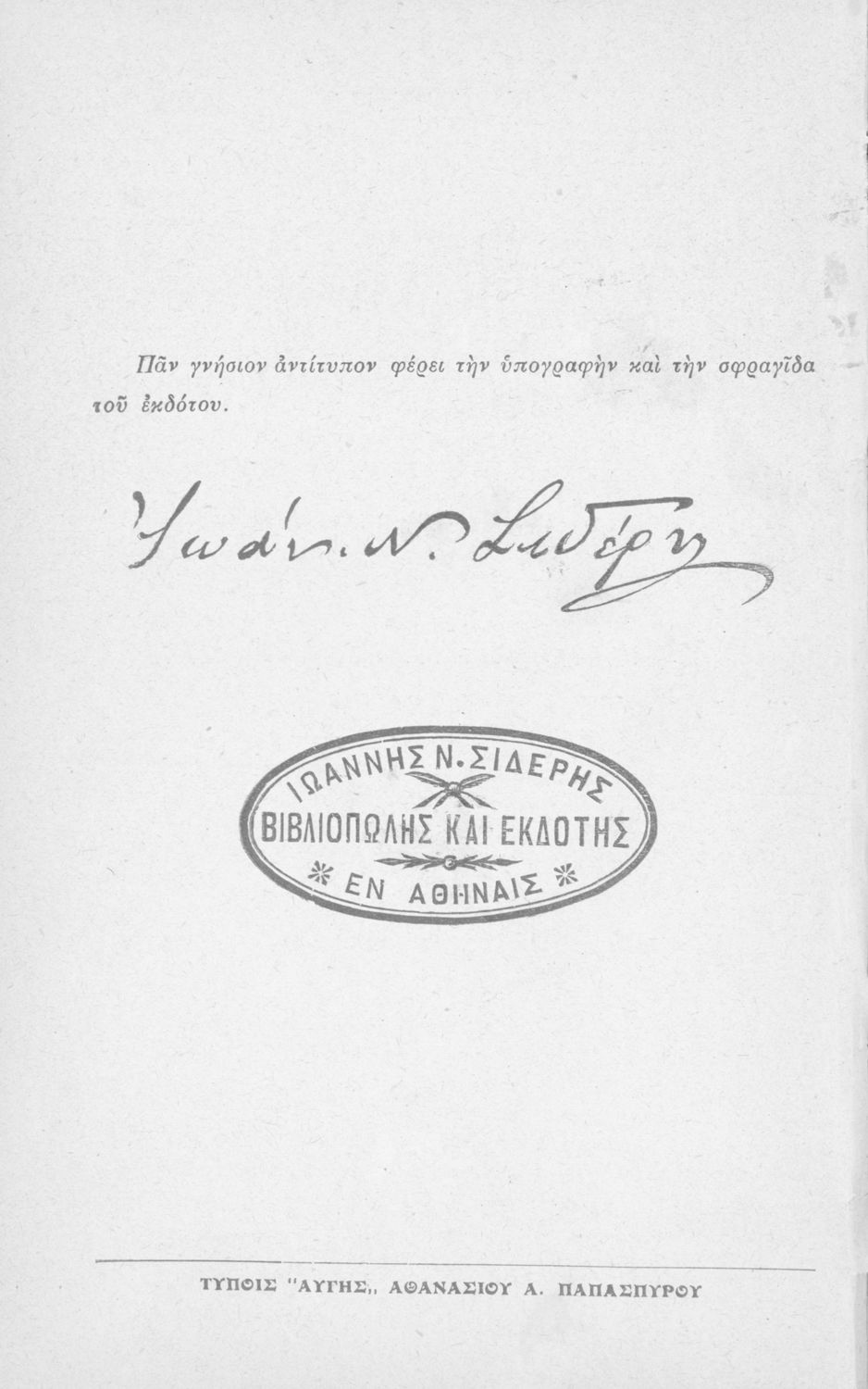 Εκδότης: Ιωάννης Ν. Σιδέρης Έτος έκδοσης: 1917 Τόπος έκδοσης: Αθήνα |