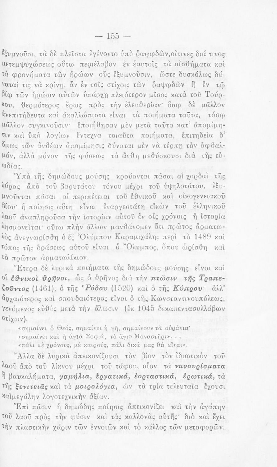 Παρουσίαση περιεχομένου: Σχολικό εγχειρίδιο Αρχαίων και Νέων Ελληνικών για τις Γ΄, Δ΄, Ε΄, ΣΤ΄ Γυμνασίου που παρουσιάζει τα είδη λογοτεχνίας και την εξέλιξη της ελληνικής γλώσσας από την εποχή του Όμηρου μέχρι την Ελληνική Επανάσταση. Περιέχει και αναφορά στα δημοτικά τραγούδια και σύντομα βιογραφικά σημειώματα επιφανών λογοτεχνών. Ο συγγραφέας ήταν Καθηγητής Ελληνικών Γραμμάτων στο Εθνικό Πανεπιστήμιο και Γυμνασιάρχης στο Αρσάκειο.