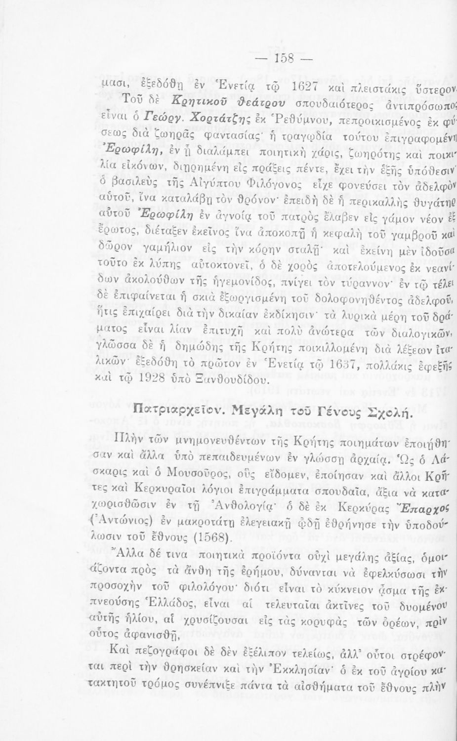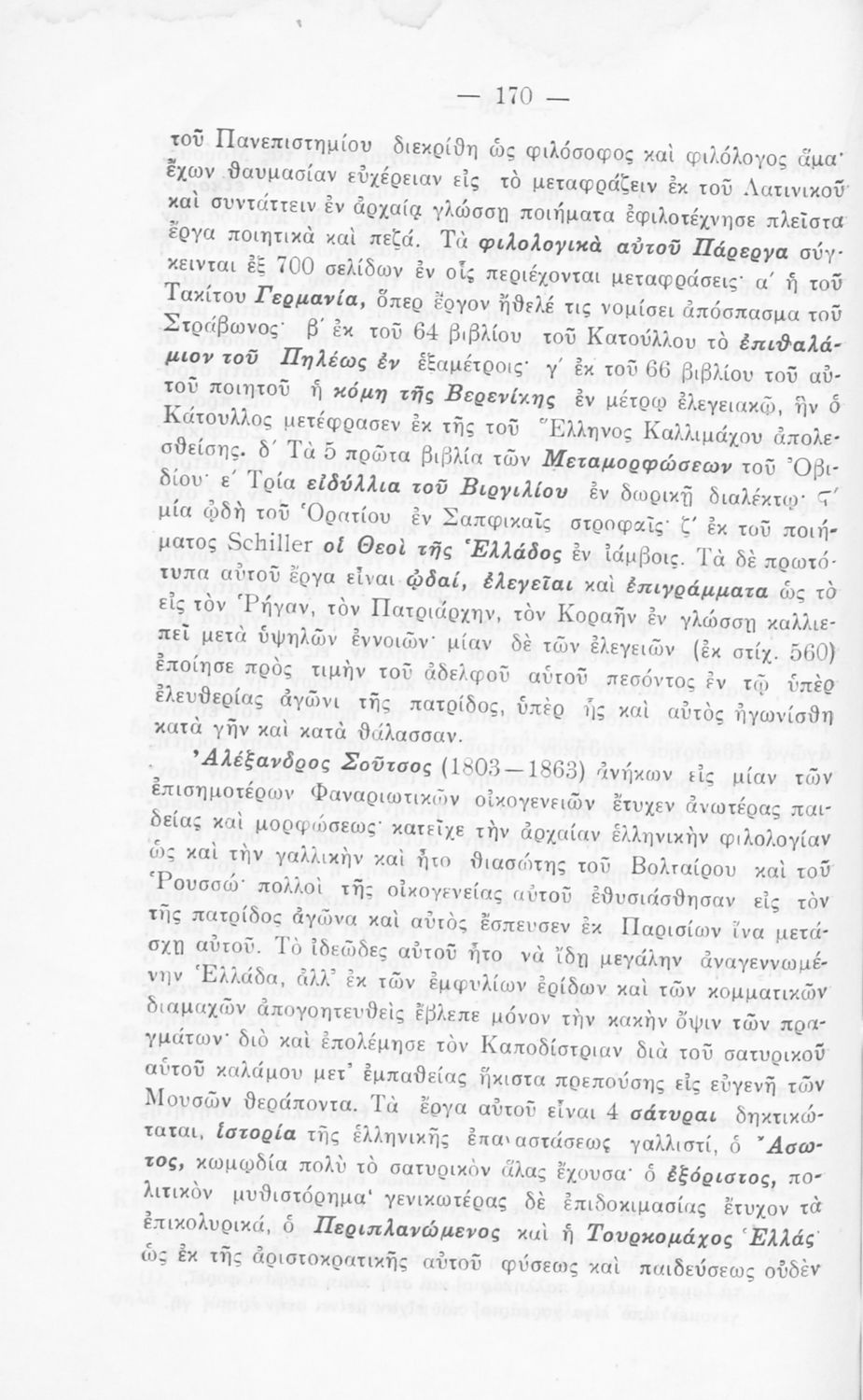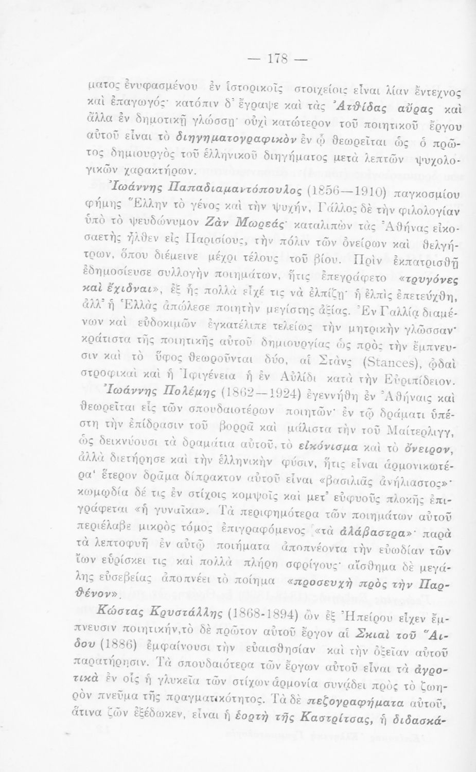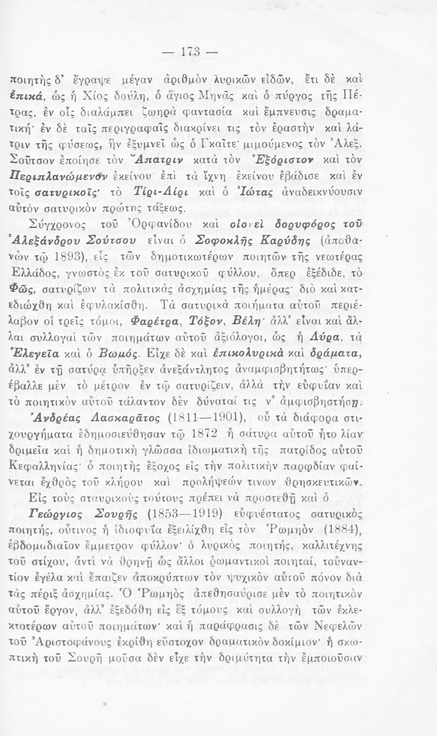 Σχολικό εγχειρίδιο Αρχαίων και Νέων Ελληνικών για τις Γ΄, Δ΄, Ε΄, ΣΤ΄ Γυμνασίου που παρουσιάζει τα είδη λογοτεχνίας και την εξέλιξη της ελληνικής γλώσσας από την εποχή του Όμηρου μέχρι την Ελληνική Επανάσταση. Περιέχει και αναφορά στα δημοτικά τραγούδια και σύντομα βιογραφικά σημειώματα επιφανών λογοτεχνών. Ο συγγραφέας ήταν Καθηγητής Ελληνικών Γραμμάτων στο Εθνικό Πανεπιστήμιο και Γυμνασιάρχης στο Αρσάκειο.