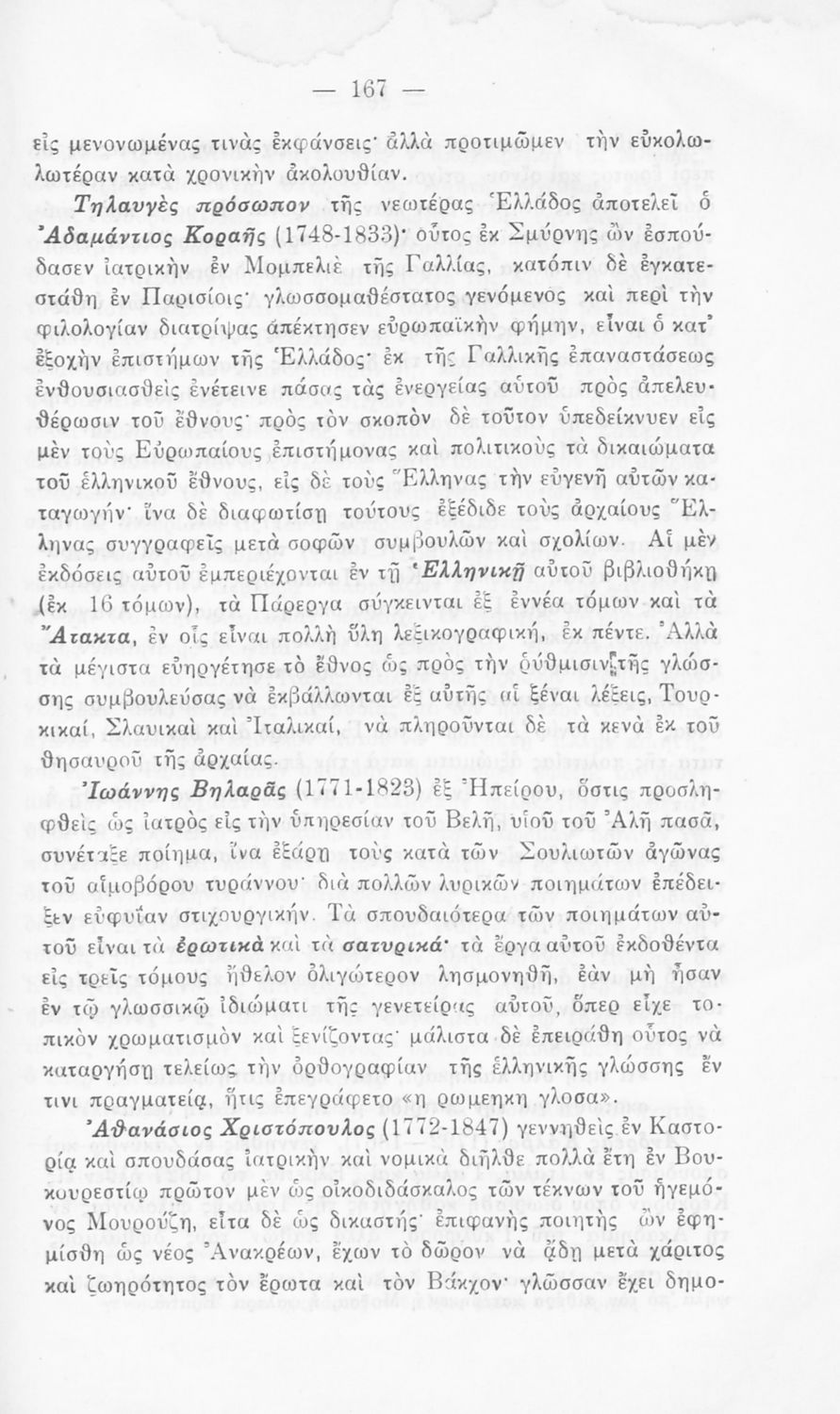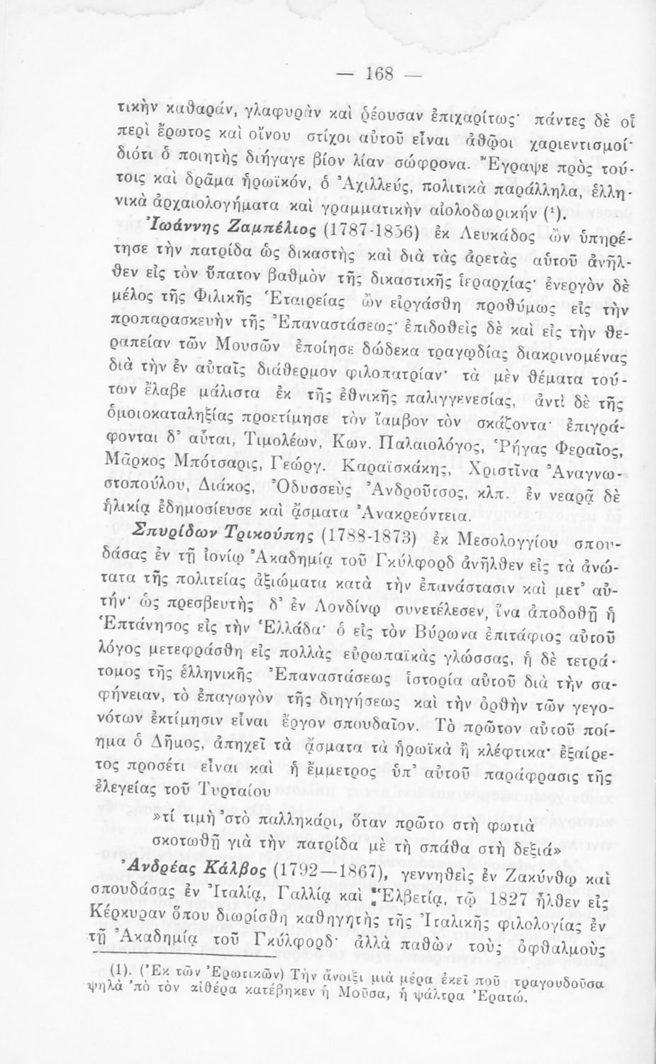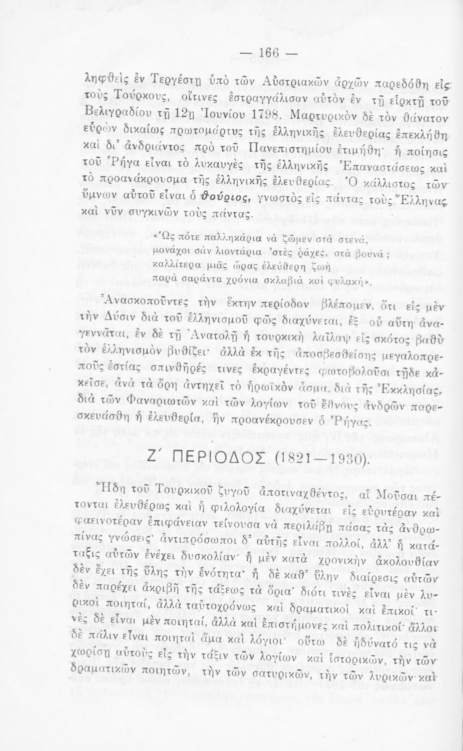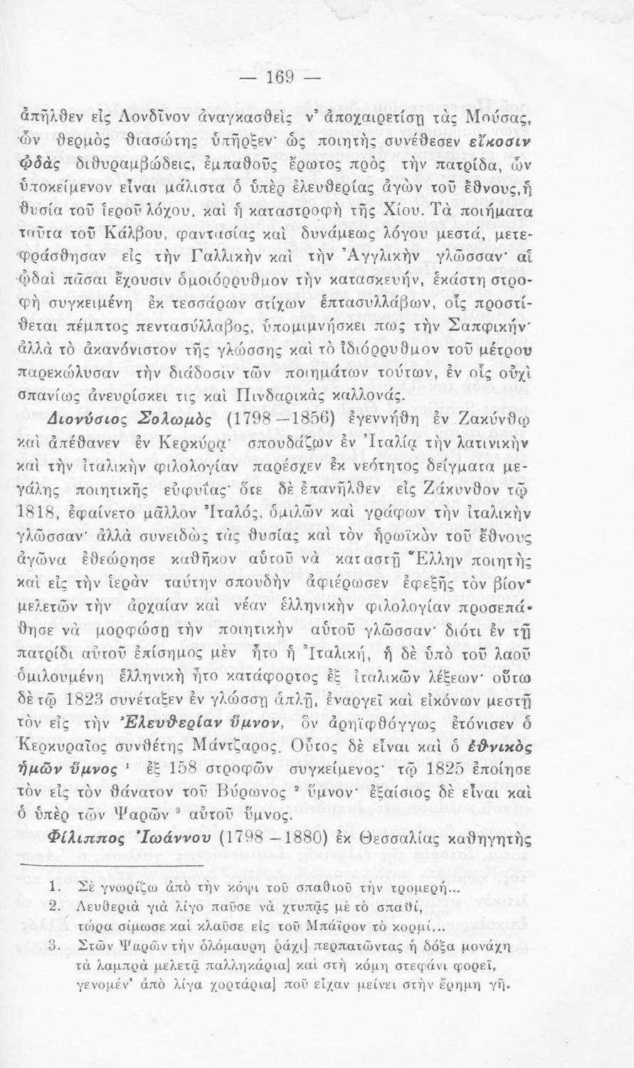 Σχολικό εγχειρίδιο Αρχαίων και Νέων Ελληνικών για τις Γ΄, Δ΄, Ε΄, ΣΤ΄ Γυμνασίου που παρουσιάζει τα είδη λογοτεχνίας και την εξέλιξη της ελληνικής γλώσσας από την εποχή του Όμηρου μέχρι την Ελληνική Επανάσταση. Περιέχει και αναφορά στα δημοτικά τραγούδια και σύντομα βιογραφικά σημειώματα επιφανών λογοτεχνών. Ο συγγραφέας ήταν Καθηγητής Ελληνικών Γραμμάτων στο Εθνικό Πανεπιστήμιο και Γυμνασιάρχης στο Αρσάκειο.