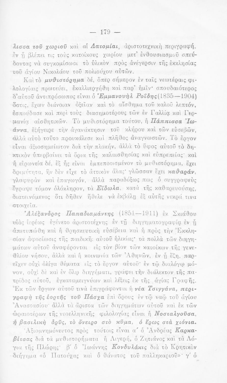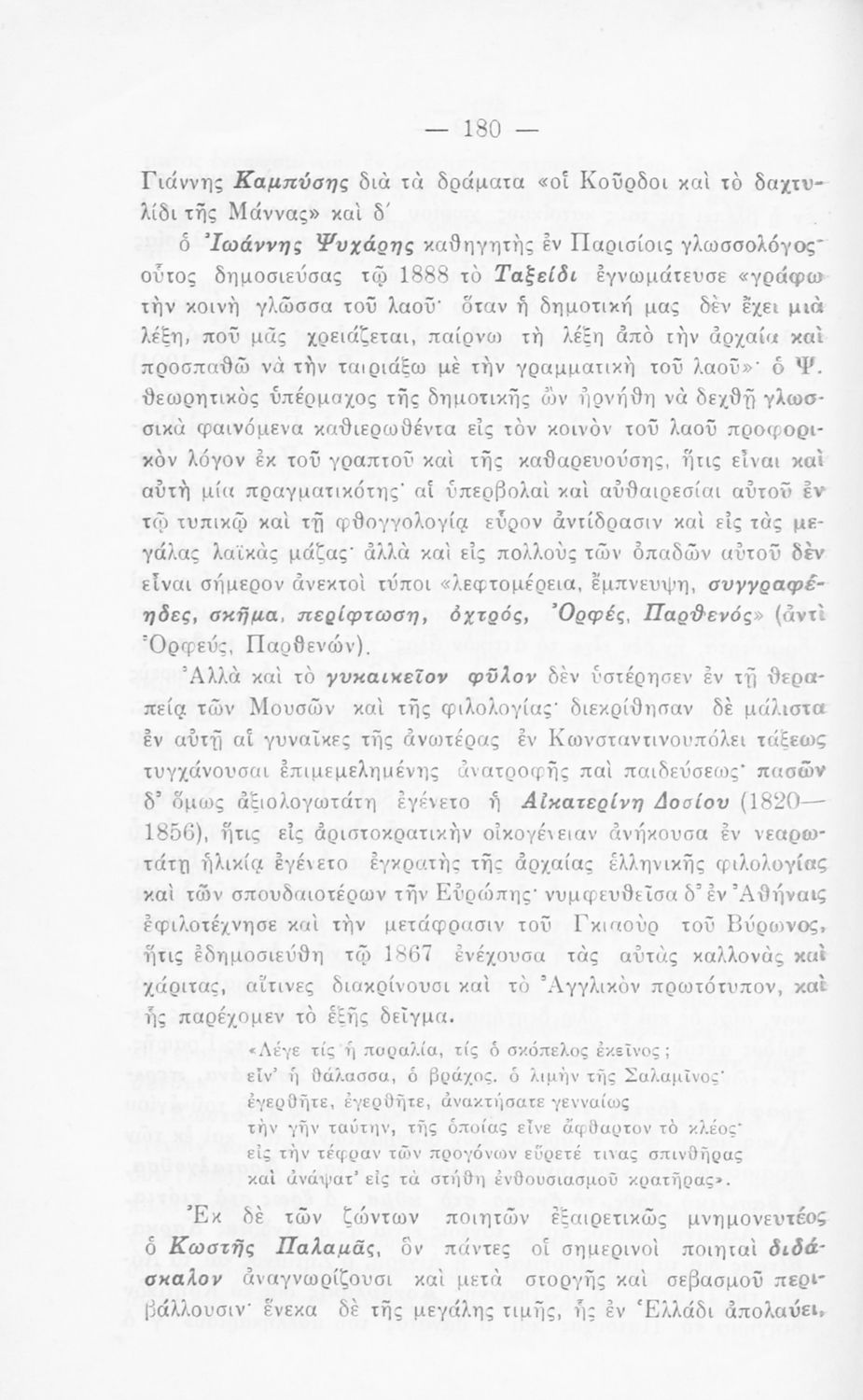 Σχολικό εγχειρίδιο Αρχαίων και Νέων Ελληνικών για τις Γ΄, Δ΄, Ε΄, ΣΤ΄ Γυμνασίου που παρουσιάζει τα είδη λογοτεχνίας και την εξέλιξη της ελληνικής γλώσσας από την εποχή του Όμηρου μέχρι την Ελληνική Επανάσταση. Περιέχει και αναφορά στα δημοτικά τραγούδια και σύντομα βιογραφικά σημειώματα επιφανών λογοτεχνών. Ο συγγραφέας ήταν Καθηγητής Ελληνικών Γραμμάτων στο Εθνικό Πανεπιστήμιο και Γυμνασιάρχης στο Αρσάκειο.