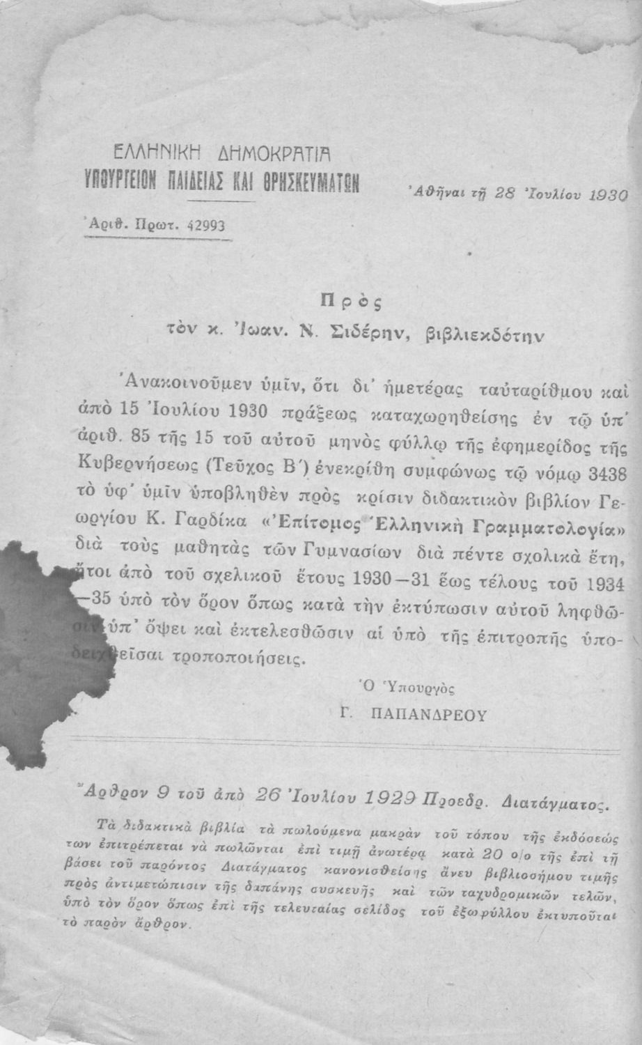 Εκδότης: Βιβλιοπωλείο Ιωάννη Ν. Σιδέρη Έτος έκδοσης: 1931 Τόπος έκδοσης: Αθήνα Έκδοση: 2η Υπουργική απόφαση / Σύμβαση: 62080/22-10-1931 Έτος έγκρισης: 1931 |