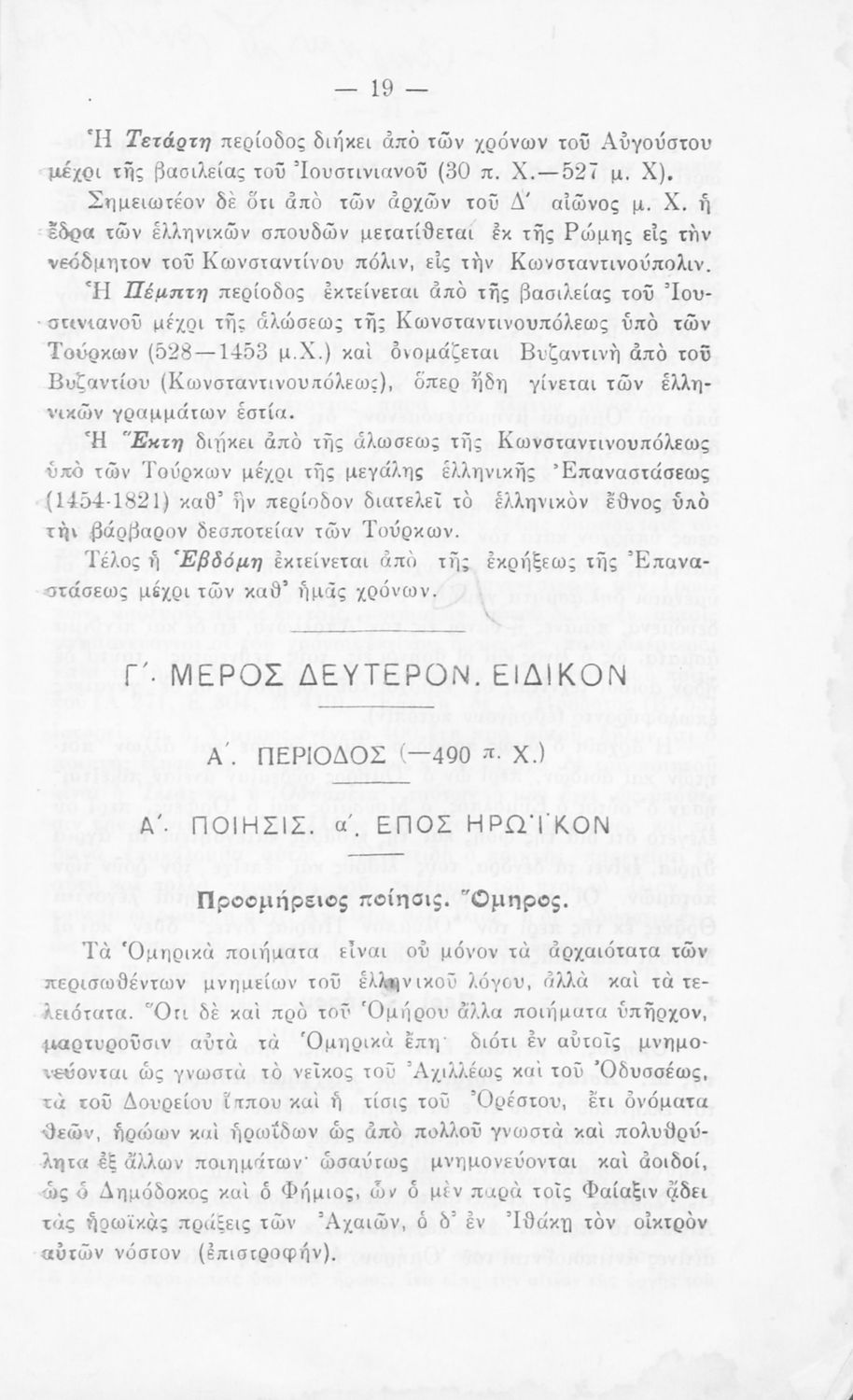 Σχολικό εγχειρίδιο Αρχαίων και Νέων Ελληνικών για τις Γ΄, Δ΄, Ε΄, ΣΤ΄ Γυμνασίου που παρουσιάζει τα είδη λογοτεχνίας και την εξέλιξη της ελληνικής γλώσσας από την εποχή του Όμηρου μέχρι την Ελληνική Επανάσταση. Περιέχει και αναφορά στα δημοτικά τραγούδια και σύντομα βιογραφικά σημειώματα επιφανών λογοτεχνών. Ο συγγραφέας ήταν Καθηγητής Ελληνικών Γραμμάτων στο Εθνικό Πανεπιστήμιο και Γυμνασιάρχης στο Αρσάκειο.