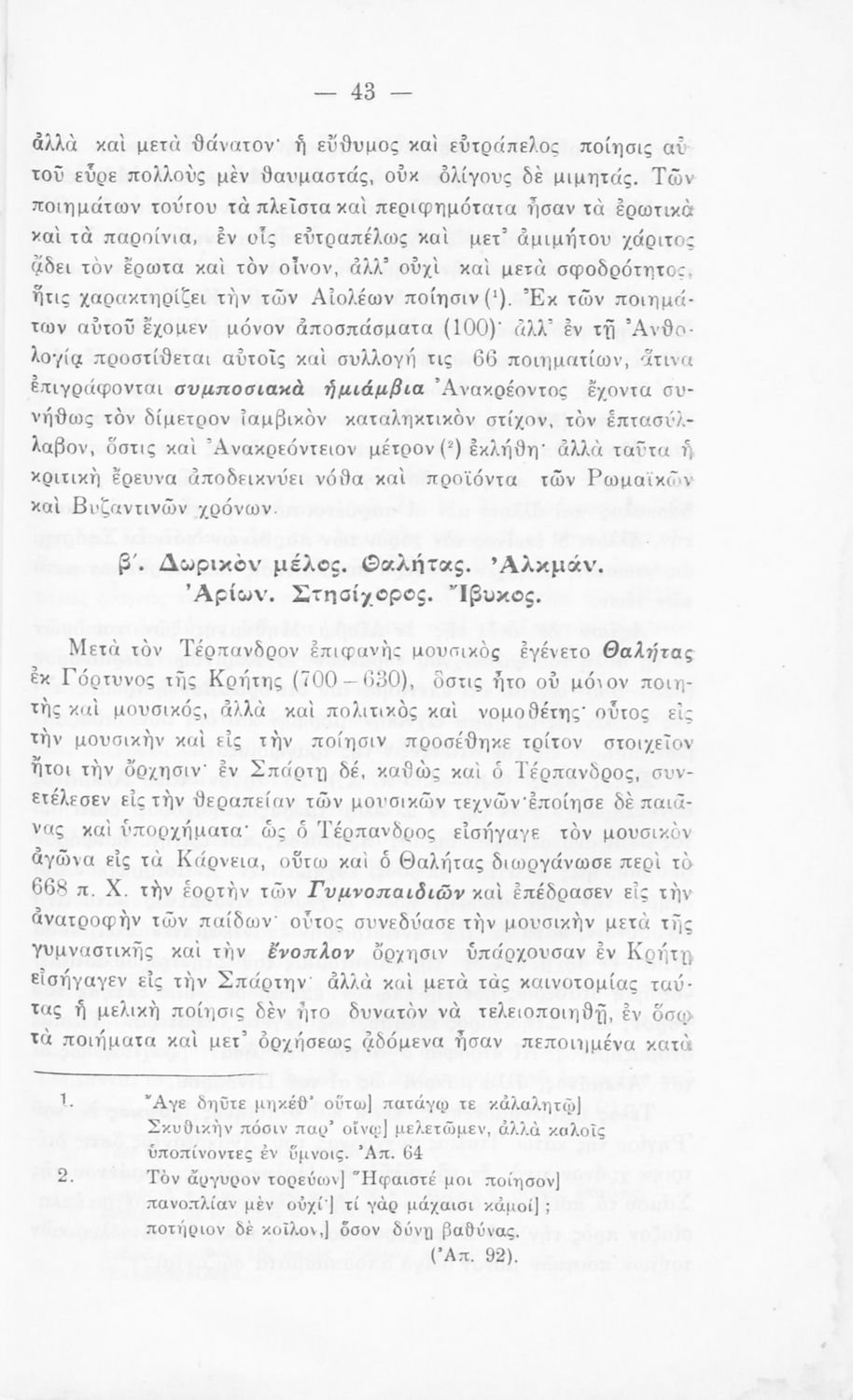 Παρουσίαση περιεχομένου: Σχολικό εγχειρίδιο Αρχαίων και Νέων Ελληνικών για τις Γ΄, Δ΄, Ε΄, ΣΤ΄ Γυμνασίου που παρουσιάζει τα είδη λογοτεχνίας και την εξέλιξη της ελληνικής γλώσσας από την εποχή του Όμηρου μέχρι την Ελληνική Επανάσταση. Περιέχει και αναφορά στα δημοτικά τραγούδια και σύντομα βιογραφικά σημειώματα επιφανών λογοτεχνών. Ο συγγραφέας ήταν Καθηγητής Ελληνικών Γραμμάτων στο Εθνικό Πανεπιστήμιο και Γυμνασιάρχης στο Αρσάκειο.