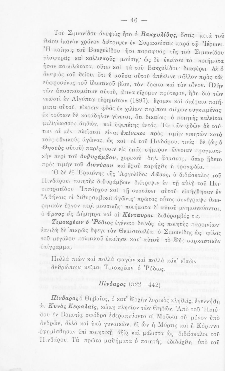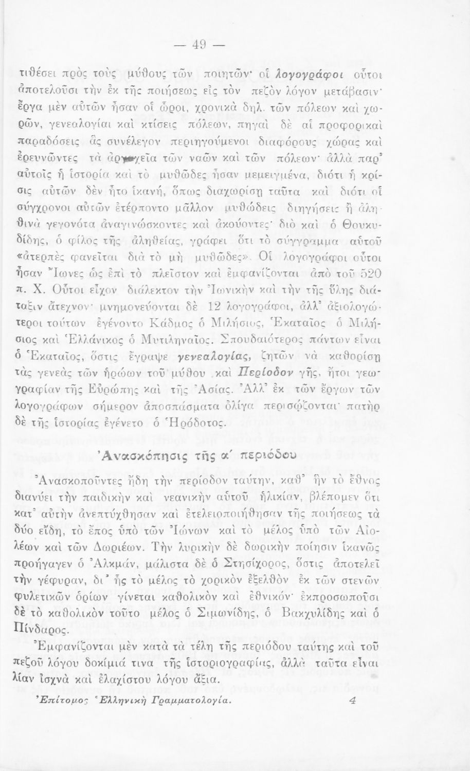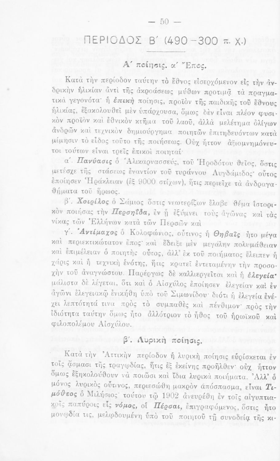 Σχολικό εγχειρίδιο Αρχαίων και Νέων Ελληνικών για τις Γ΄, Δ΄, Ε΄, ΣΤ΄ Γυμνασίου που παρουσιάζει τα είδη λογοτεχνίας και την εξέλιξη της ελληνικής γλώσσας από την εποχή του Όμηρου μέχρι την Ελληνική Επανάσταση. Περιέχει και αναφορά στα δημοτικά τραγούδια και σύντομα βιογραφικά σημειώματα επιφανών λογοτεχνών. Ο συγγραφέας ήταν Καθηγητής Ελληνικών Γραμμάτων στο Εθνικό Πανεπιστήμιο και Γυμνασιάρχης στο Αρσάκειο.