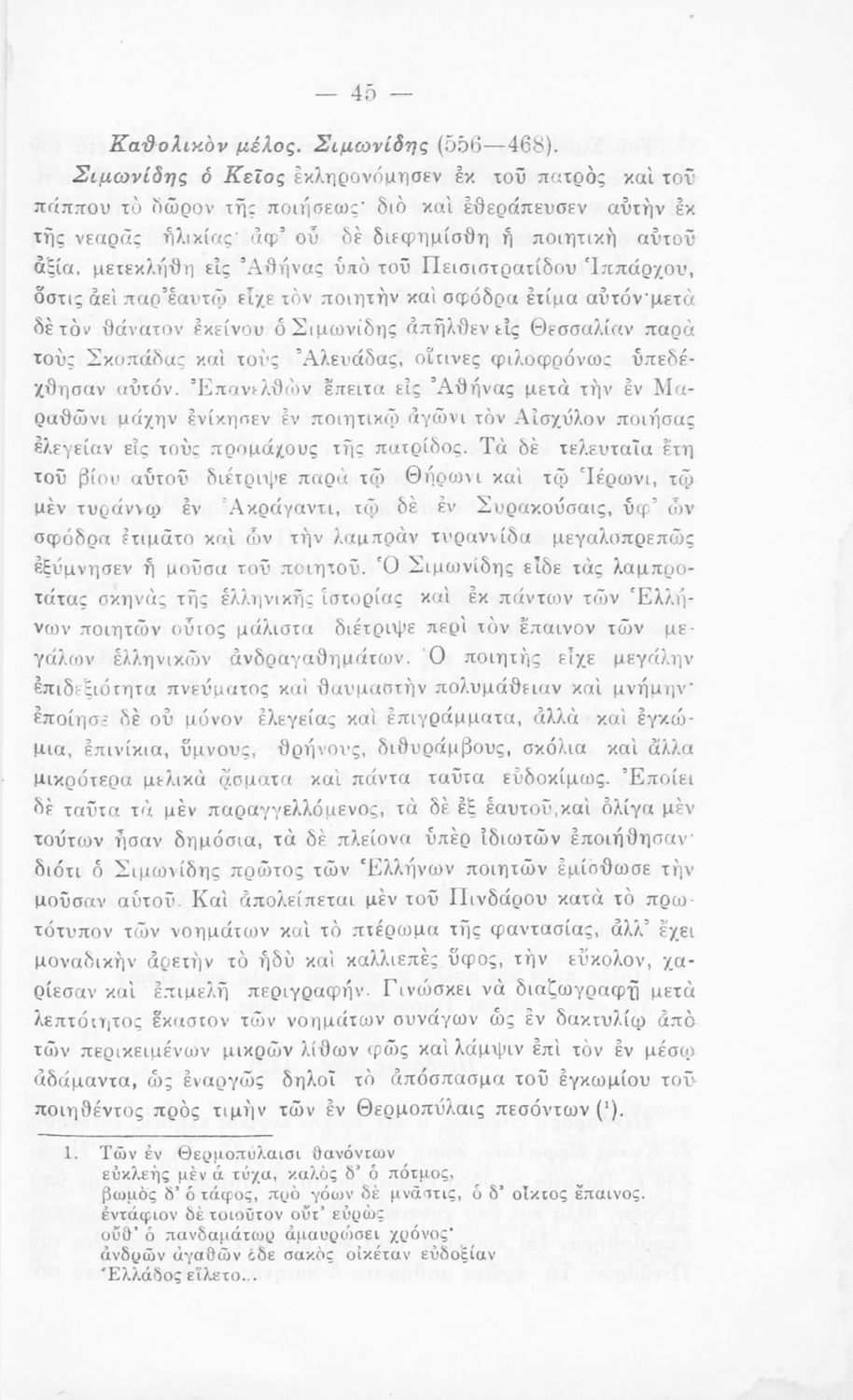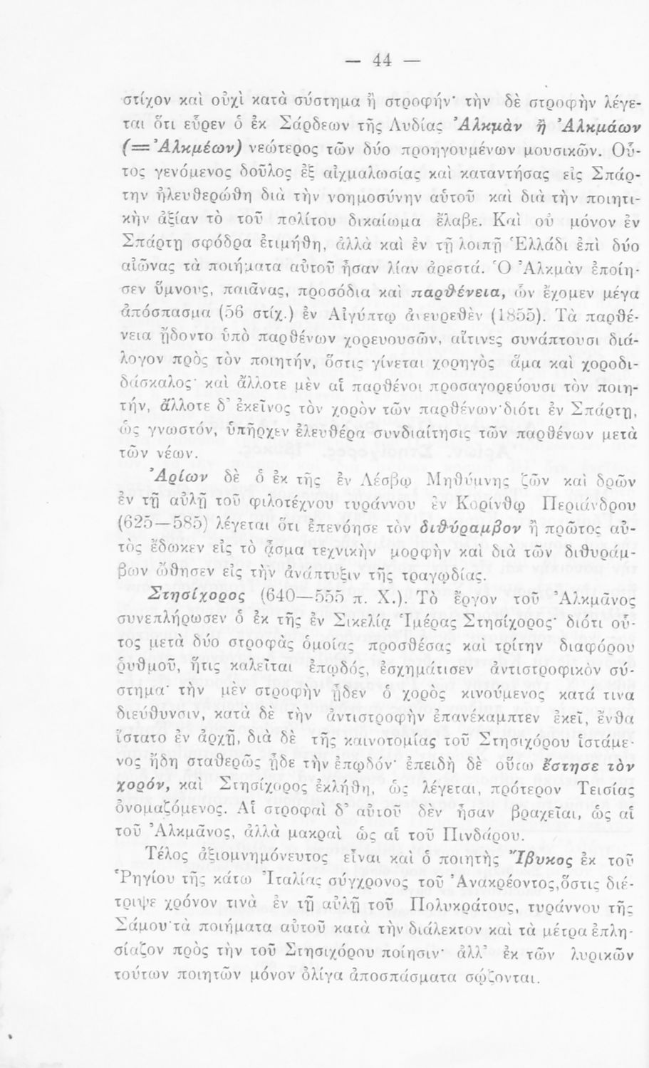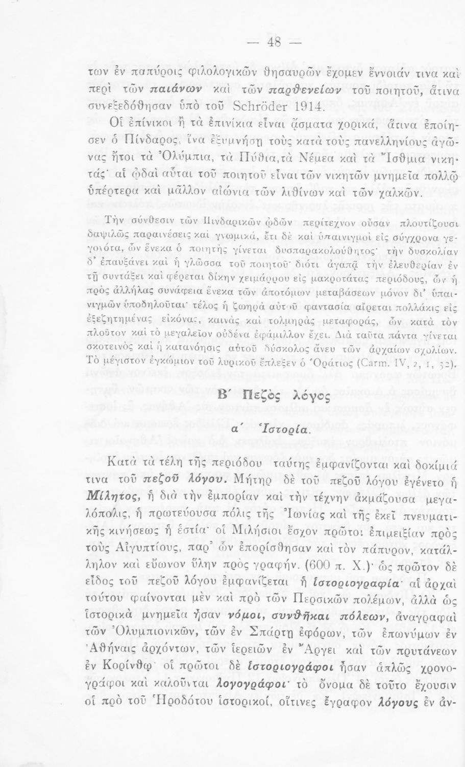 Σχολικό εγχειρίδιο Αρχαίων και Νέων Ελληνικών για τις Γ΄, Δ΄, Ε΄, ΣΤ΄ Γυμνασίου που παρουσιάζει τα είδη λογοτεχνίας και την εξέλιξη της ελληνικής γλώσσας από την εποχή του Όμηρου μέχρι την Ελληνική Επανάσταση. Περιέχει και αναφορά στα δημοτικά τραγούδια και σύντομα βιογραφικά σημειώματα επιφανών λογοτεχνών. Ο συγγραφέας ήταν Καθηγητής Ελληνικών Γραμμάτων στο Εθνικό Πανεπιστήμιο και Γυμνασιάρχης στο Αρσάκειο.
