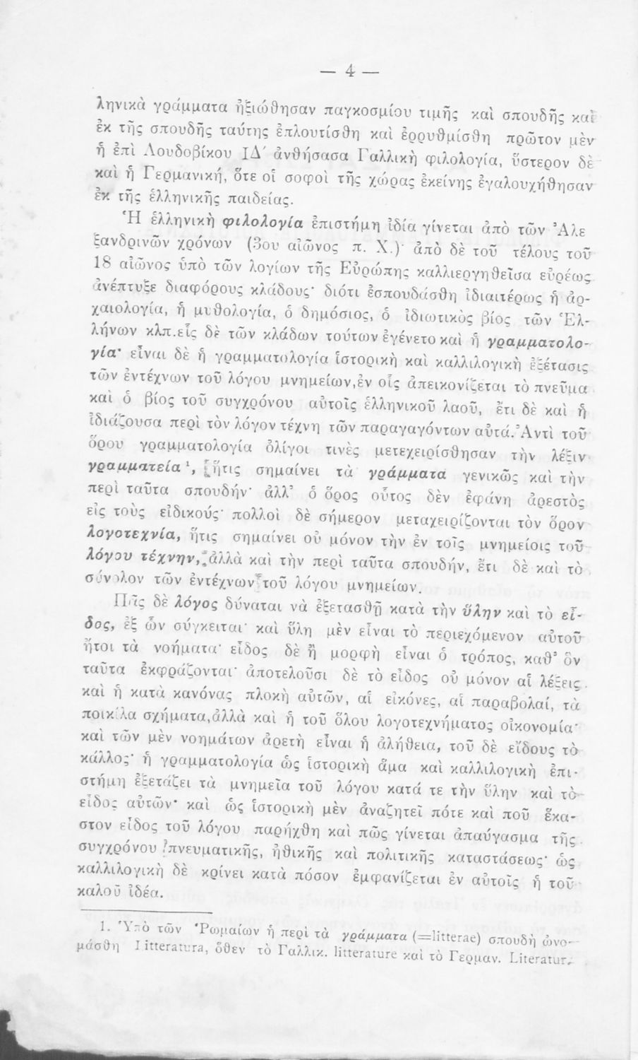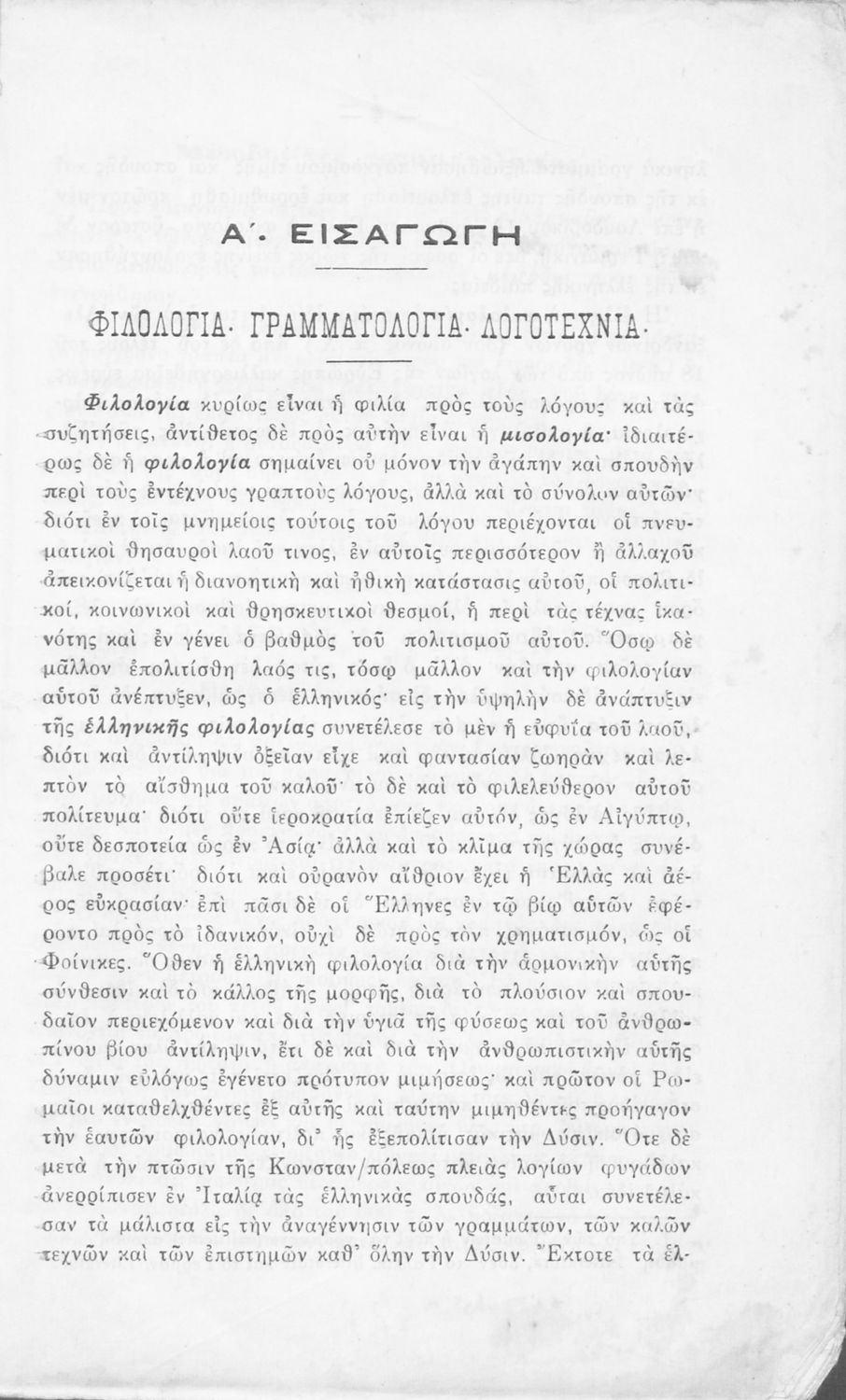 Παρουσίαση περιεχομένου: Σχολικό εγχειρίδιο Αρχαίων και Νέων Ελληνικών για τις Γ΄, Δ΄, Ε΄, ΣΤ΄ Γυμνασίου που παρουσιάζει τα είδη λογοτεχνίας και την εξέλιξη της ελληνικής γλώσσας από την εποχή του Όμηρου μέχρι την Ελληνική Επανάσταση. Περιέχει και αναφορά στα δημοτικά τραγούδια και σύντομα βιογραφικά σημειώματα επιφανών λογοτεχνών. Ο συγγραφέας ήταν Καθηγητής Ελληνικών Γραμμάτων στο Εθνικό Πανεπιστήμιο και Γυμνασιάρχης στο Αρσάκειο.
