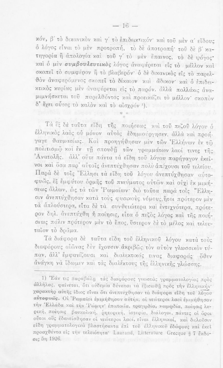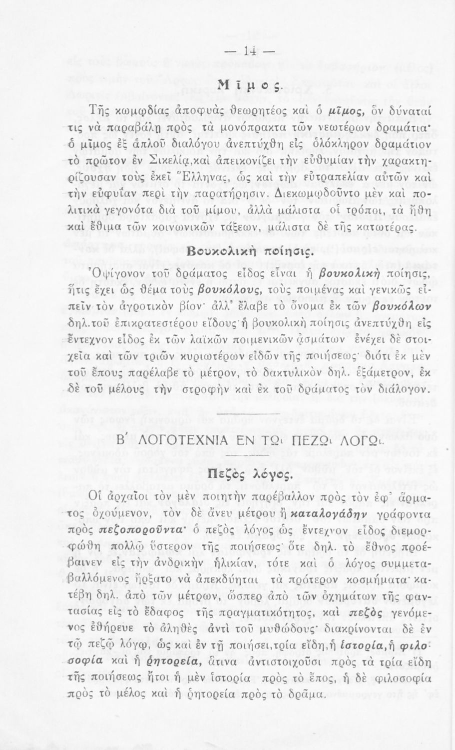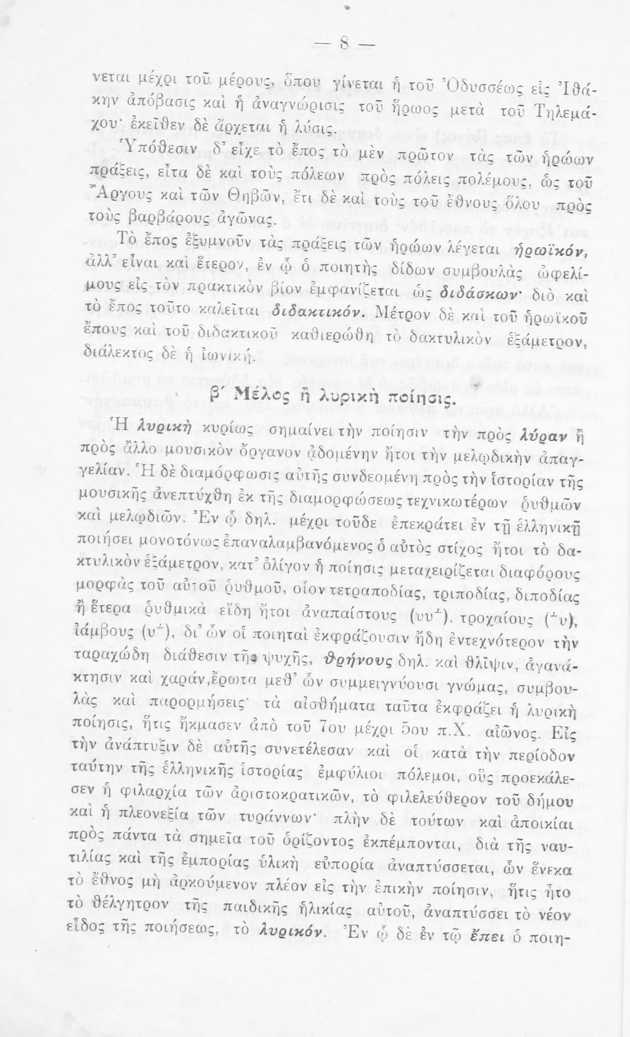 Σχολικό εγχειρίδιο Αρχαίων και Νέων Ελληνικών για τις Γ΄, Δ΄, Ε΄, ΣΤ΄ Γυμνασίου που παρουσιάζει τα είδη λογοτεχνίας και την εξέλιξη της ελληνικής γλώσσας από την εποχή του Όμηρου μέχρι την Ελληνική Επανάσταση. Περιέχει και αναφορά στα δημοτικά τραγούδια και σύντομα βιογραφικά σημειώματα επιφανών λογοτεχνών. Ο συγγραφέας ήταν Καθηγητής Ελληνικών Γραμμάτων στο Εθνικό Πανεπιστήμιο και Γυμνασιάρχης στο Αρσάκειο.