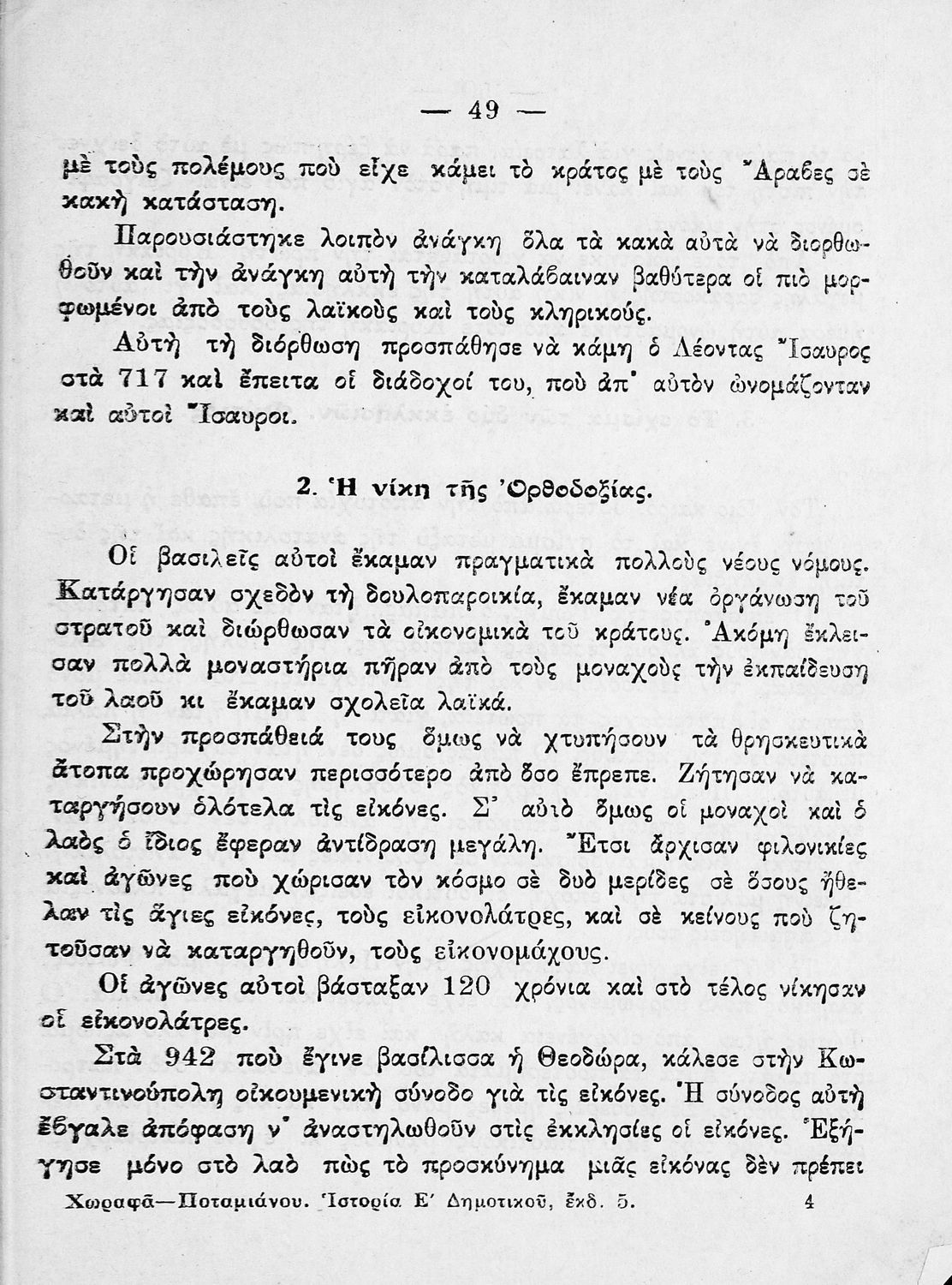 Σχολικό εγχειρίδιο για το μάθημα της Ιστορίας στους μαθητές του Δημοτικού. Αναφέρεται στα χρόνια της Βυζαντινής Αυτοκρατορίας μέχρι και την άλωση της Πόλης. Το τελευταίο κεφάλαιο αναφέρεται στα επιτεύγματα της