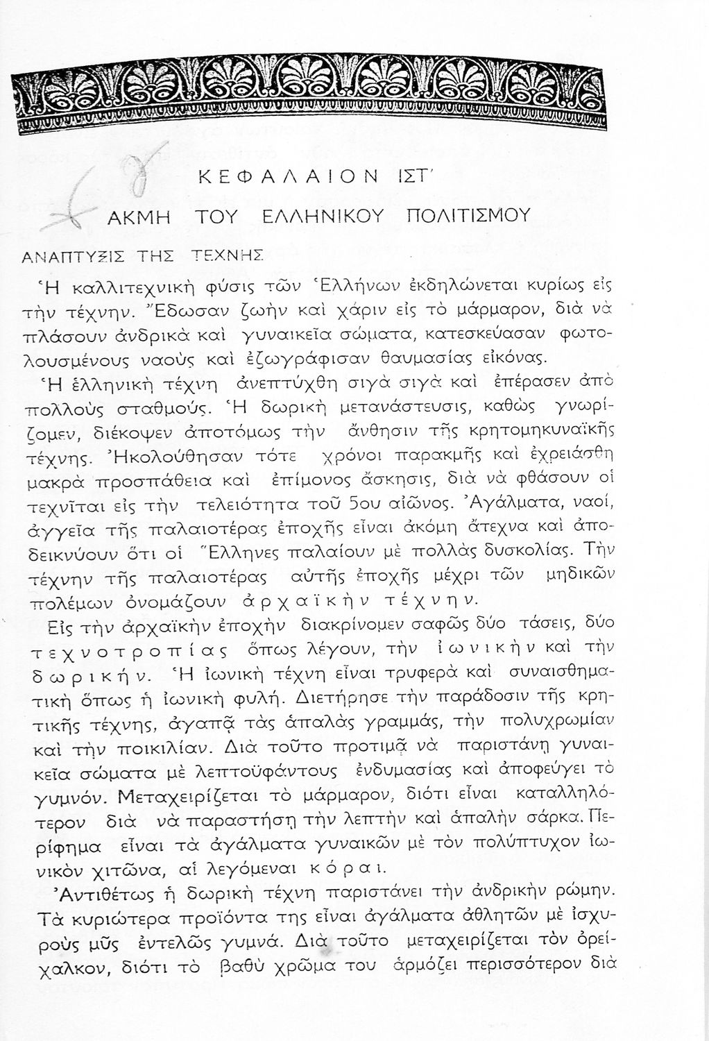 Μαθητικό βοήθημα της Α΄ Γυμνασίου για το μάθημα της Ιστορίας. Το εγχειρίδιο περιέχει περιλήψεις των κεφαλαίων του σχολικού βιβλίου. Ο συγγραφέας ήταν Γυμνασιάρχης.