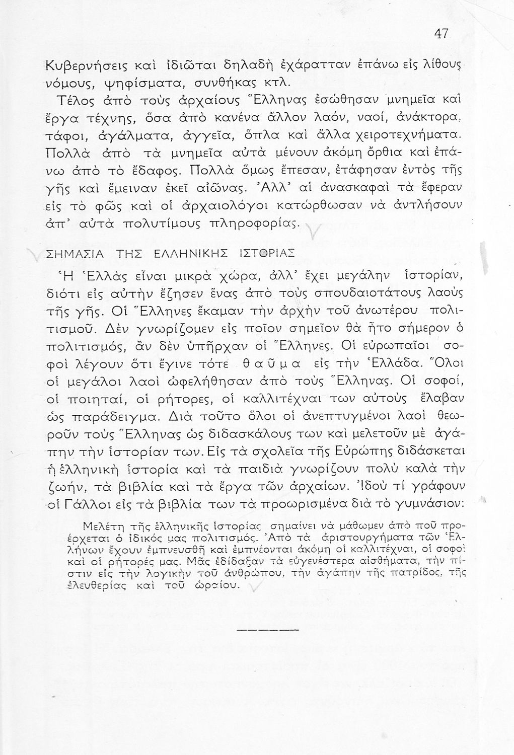 Μαθητικό βοήθημα της Α΄ Γυμνασίου για το μάθημα της Ιστορίας. Το εγχειρίδιο περιέχει περιλήψεις των κεφαλαίων του σχολικού βιβλίου. Ο συγγραφέας ήταν Γυμνασιάρχης.