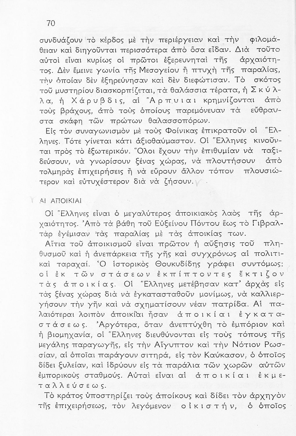 Σχολικό εγχειρίδιο Ιστορίας Α΄ Γυμνασίου που καλύπτει την περίοδο από τους προϊστορικούς χρόνους ως τις μεταρρυθμίσεις του Κλεισθένη. Περιέχει και εκτενή αναφορά στην ανάπτυξη των γραμμάτων, των τεχνών και του