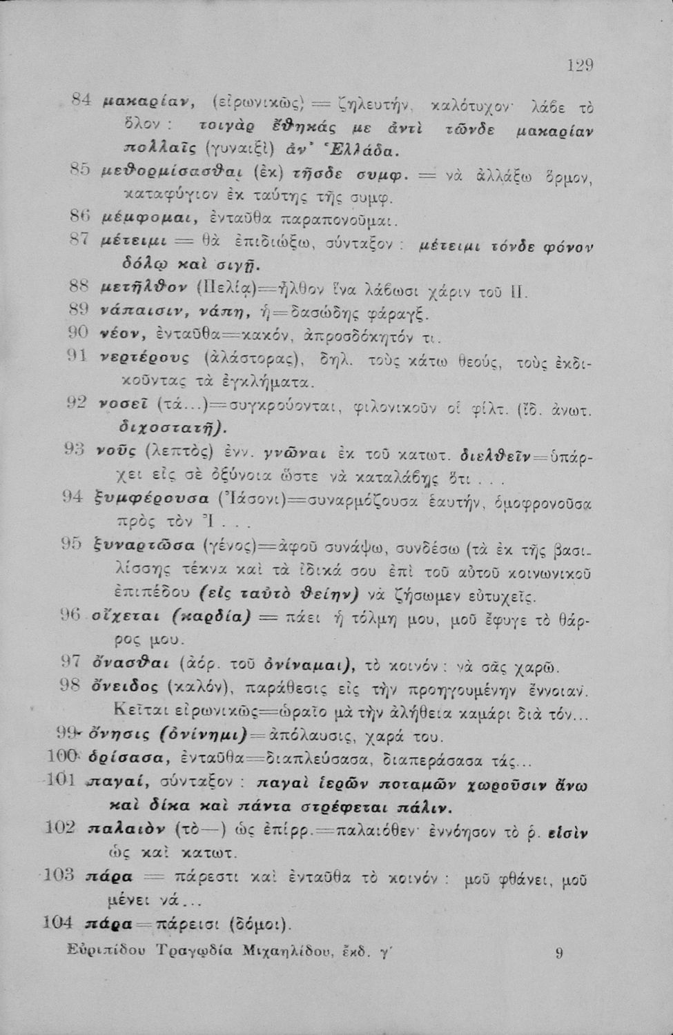 Ευριπίδου Τραγωδίαι κατ΄ εκλογήν μετά ερμηνευτικού Λεξιλογίου. Δια την ΣΤ΄ Τάξιν του Εξατάξιου Γυμνασίου