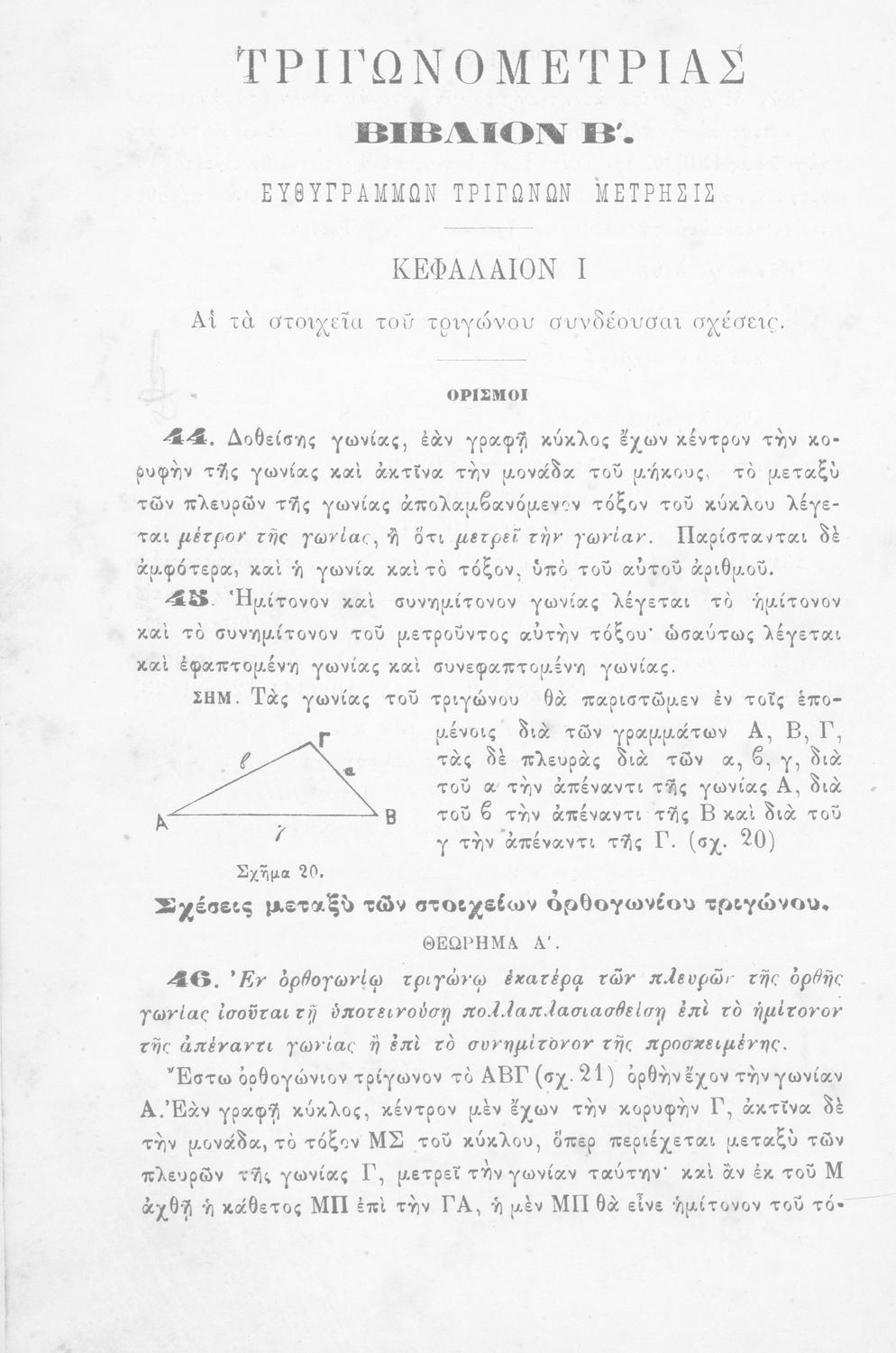 Τίτλος: Ευθύγραμμος τριγωνομετρία μόνη εγκεκριμένη δια τους μαθητής των Γυμνασίων κατά τον ΑΜΒ΄ νόμων