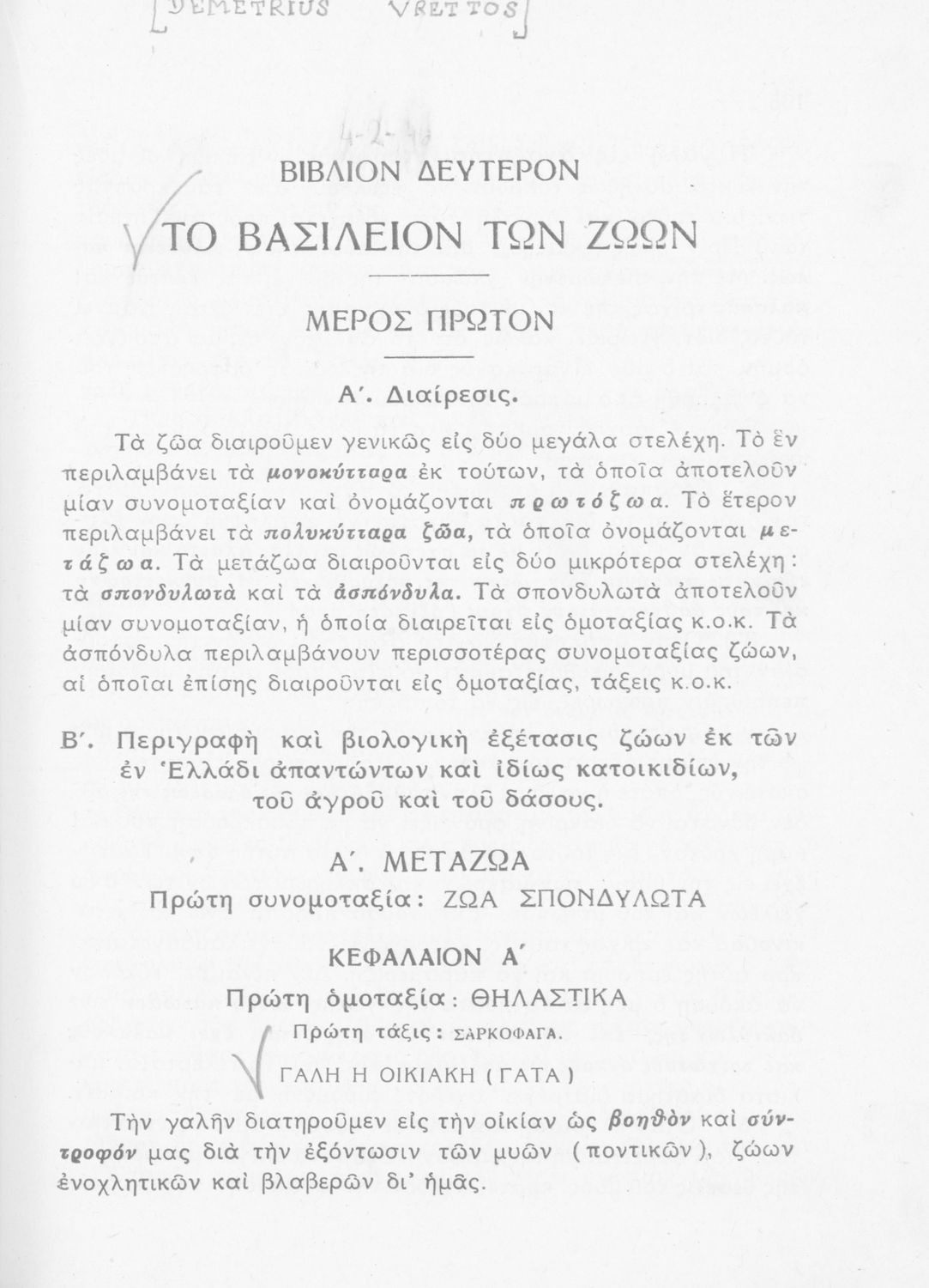 Τίτλος: Στοιχεία Φυτολογίας και Ζωολογίας, για την Β΄ Τάξιν των Γυμνασίων και την Α΄ τάξιν των Αστικών Σχολείων