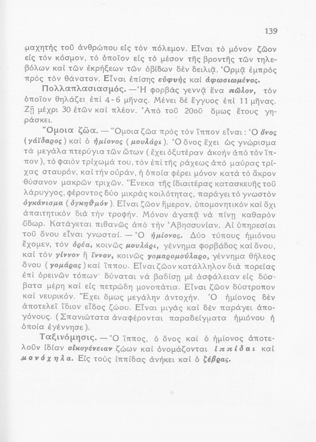 Σχολικό εγχειρίδιο Ζωολογίας/Φυτολογίας για τα Γυμνάσια και Αστικά Σχολεία που παρουσιάζει διάφορα ζώα και φυτά ανάλογα με τη συνομοταξία στην οποία ανήκουν.