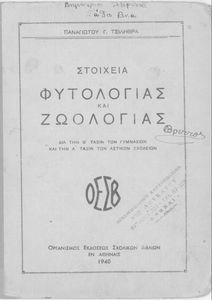 Σχολικό εγχειρίδιο Φυτολογίας για τη Β΄ Γυμνασίου και Α΄ τάξη Αστικών σχολείων που περιέχει πληροφορίες για τα φυτά της Ελλάδας καθώς και στοιχεία Ζωολογίας για ζώα διαφόρων τόπων.