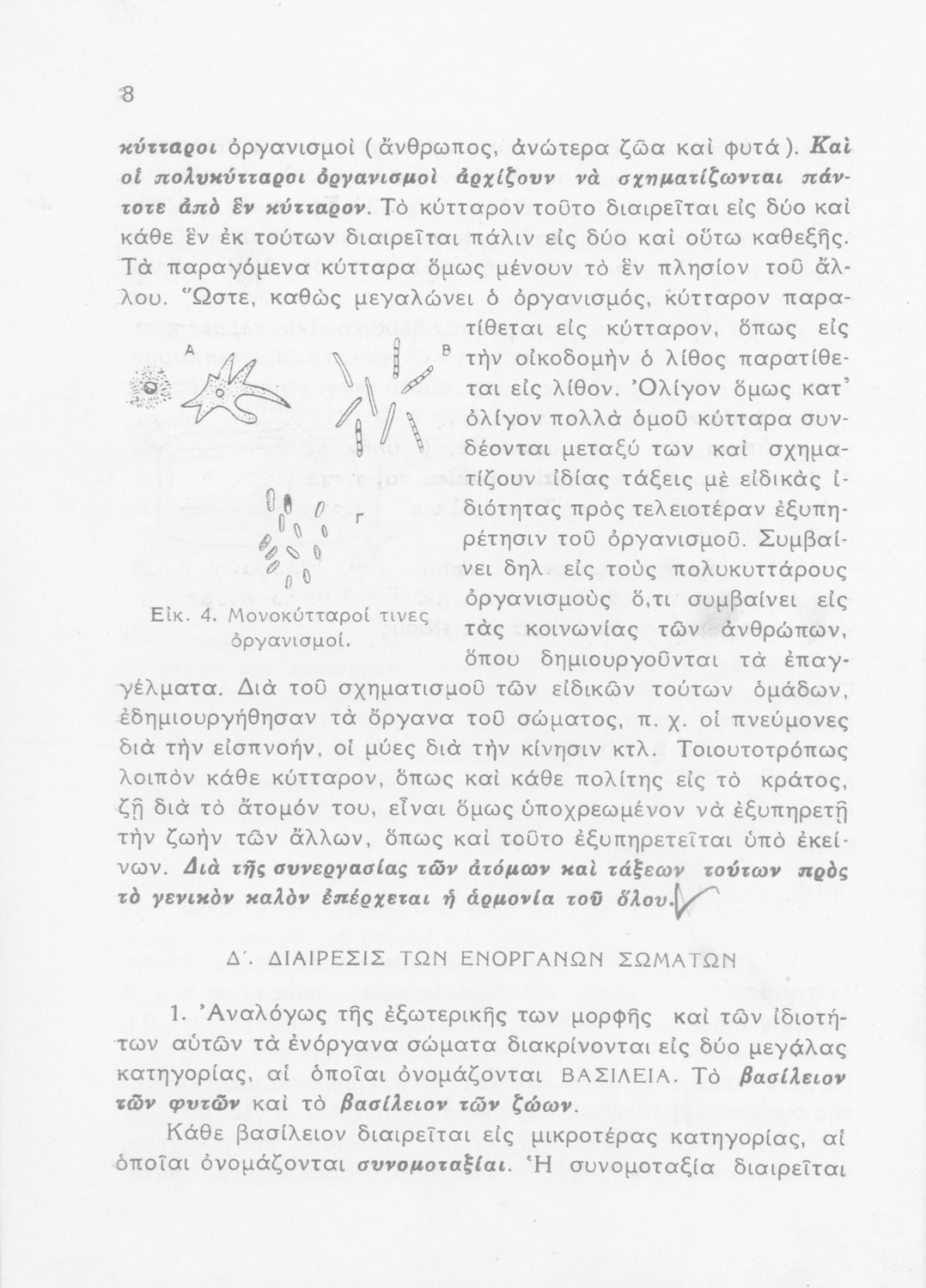 Σχολικό εγχειρίδιο Ζωολογίας/Φυτολογίας για τα Γυμνάσια και Αστικά Σχολεία που παρουσιάζει διάφορα ζώα και φυτά ανάλογα με τη συνομοταξία στην οποία ανήκουν.